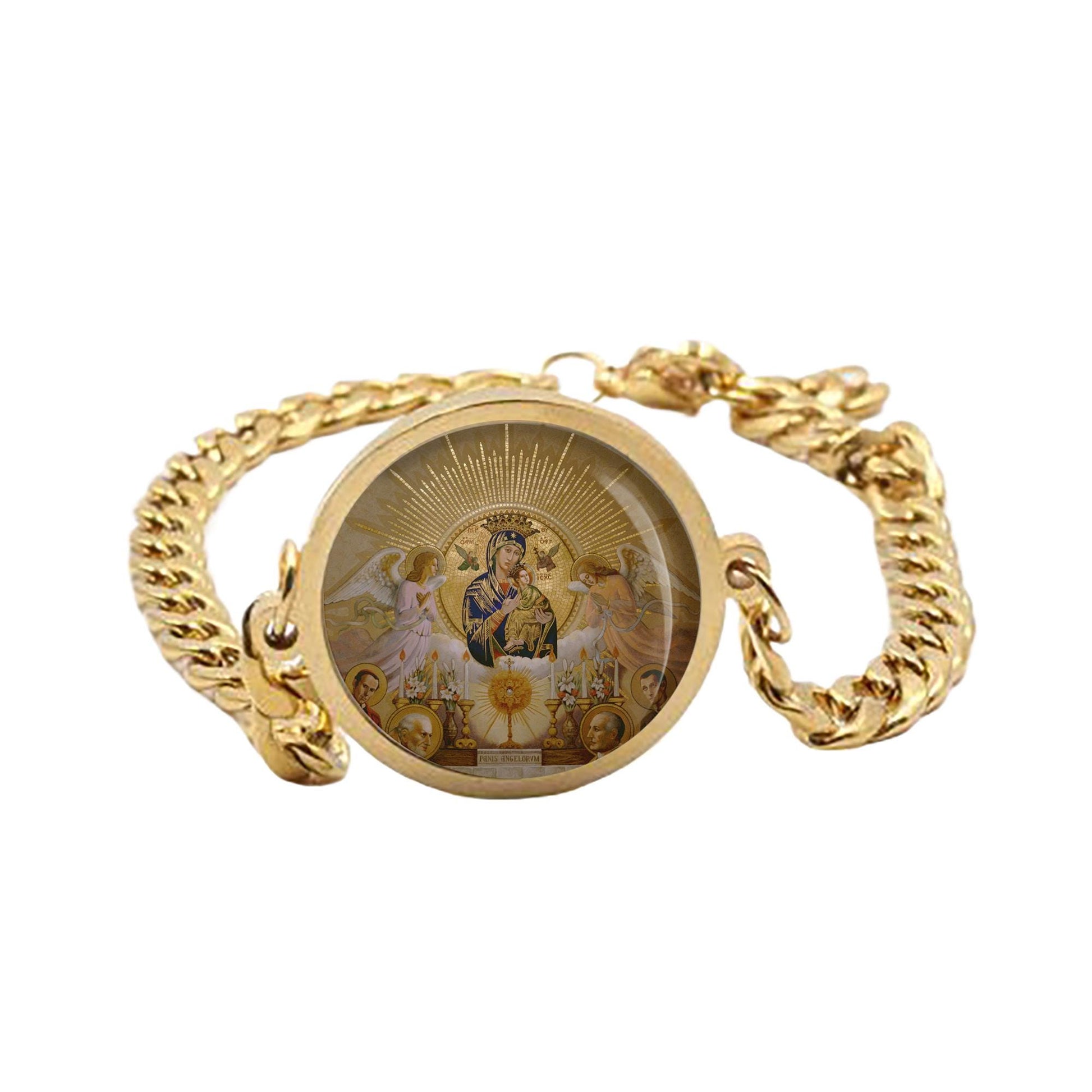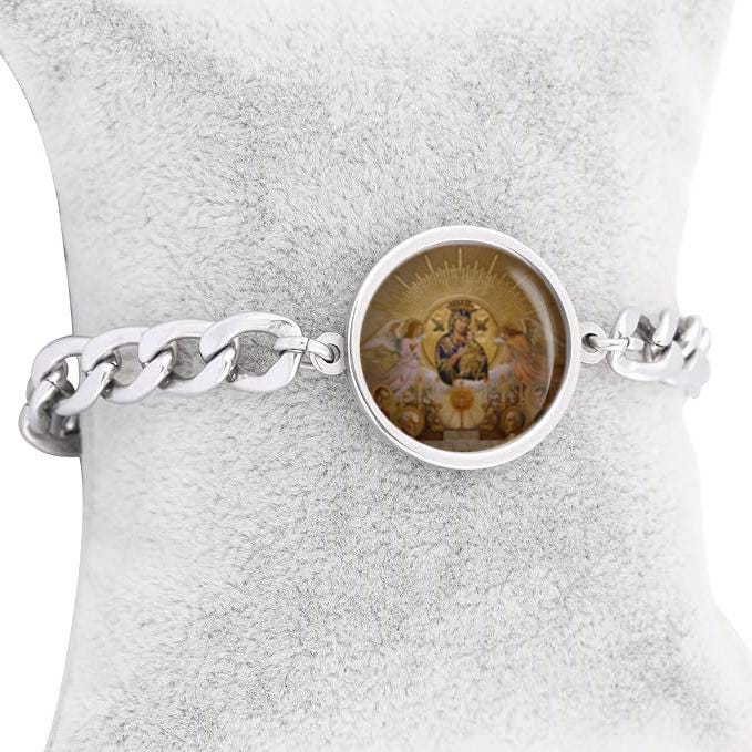 Our Lady of Perpetual Help Curb Chain Bracelet Gold or Silver Tone Religious Jewelry