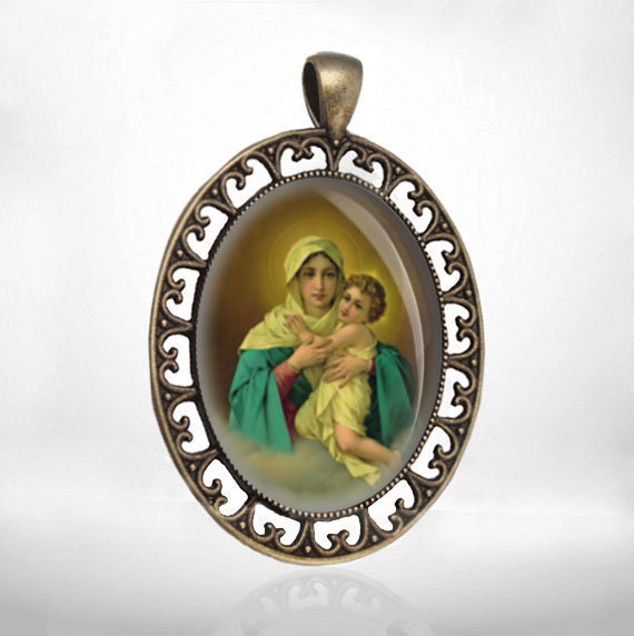 Our Lady of Schoenstatt Virgin Mary Jewelry Pendant Bronze Brass Medal