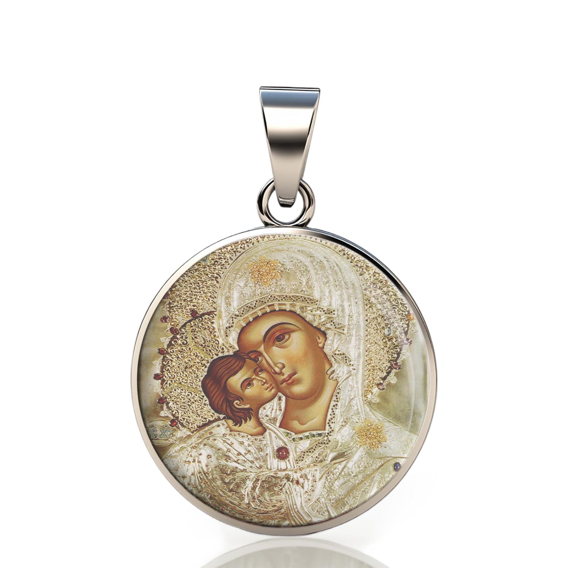 Our Lady Orthodox Icon Mary 925 Sterling Silver Round Pendant Christian Religious Medal Small 20mm