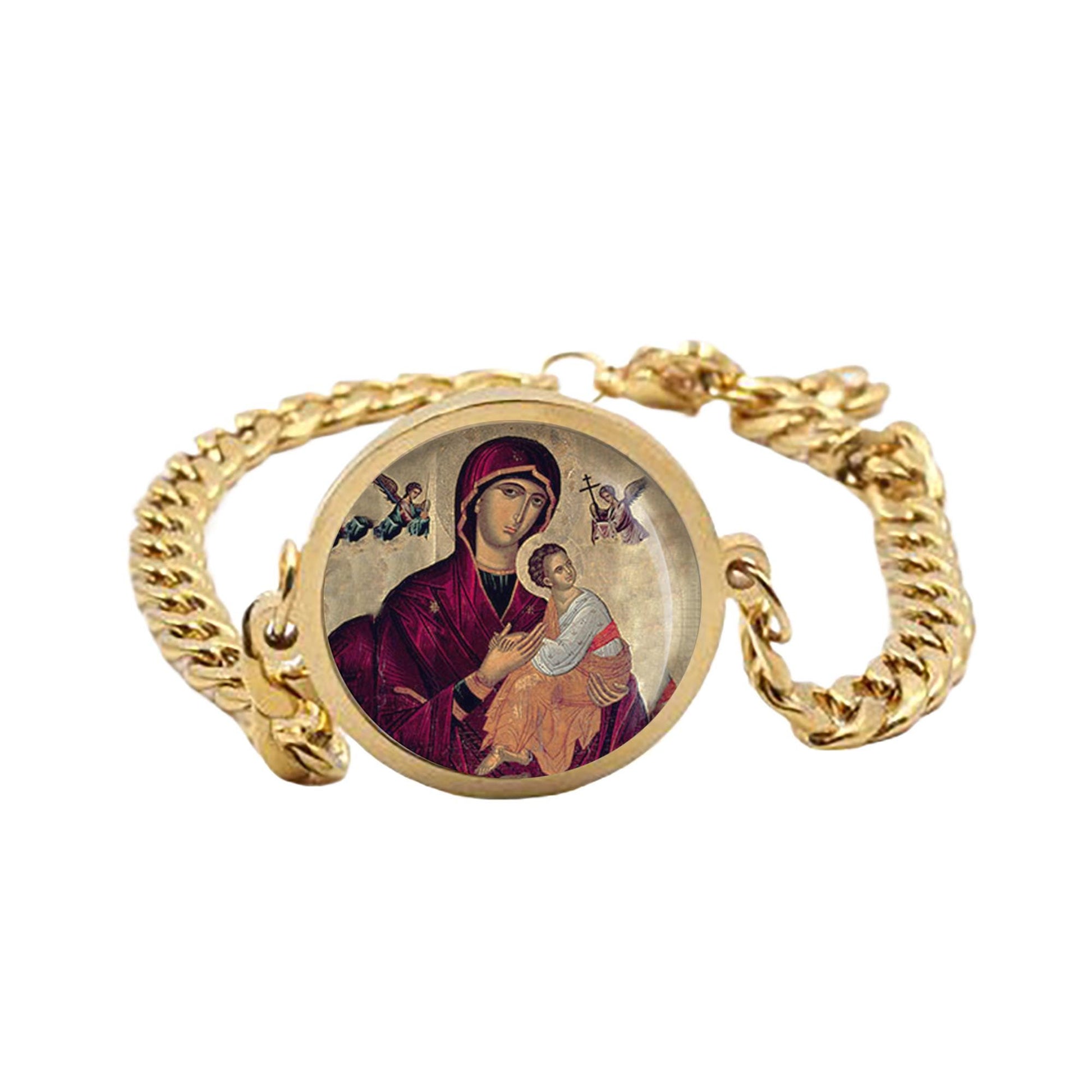 Our Lady Perpetual Help Curb Bracelet Chain Gold or Silver tone