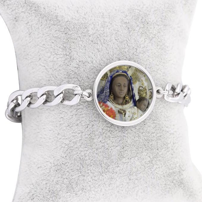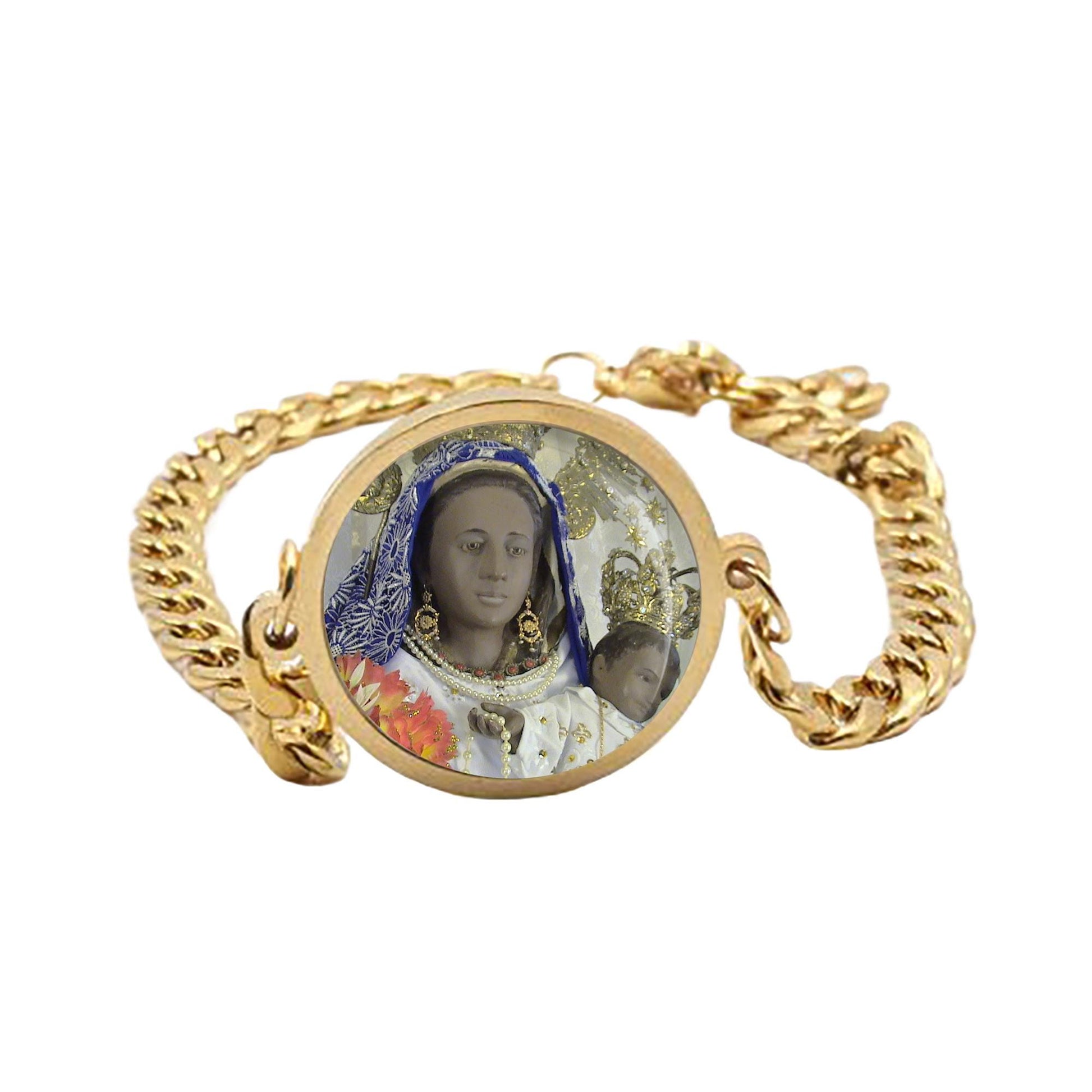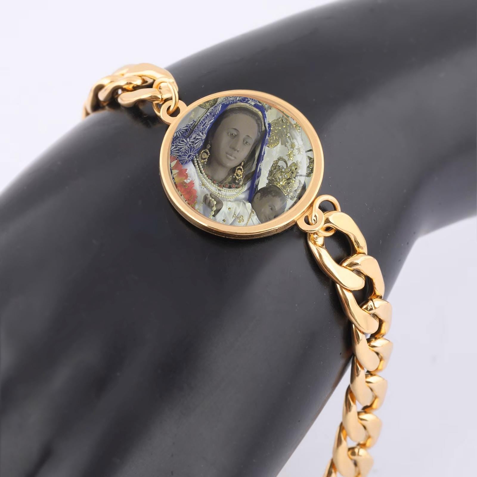 Our Lady Piat Curb Bracelet Gold or Silver tone Religious Jewelry Simple Chain