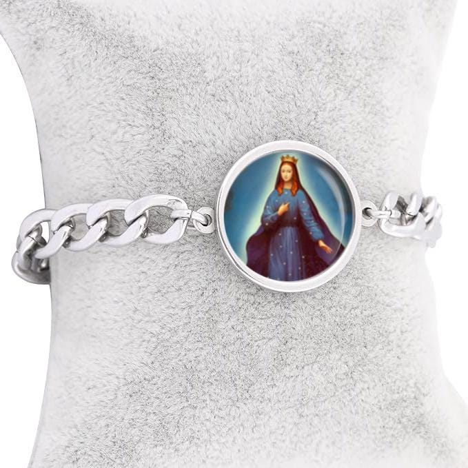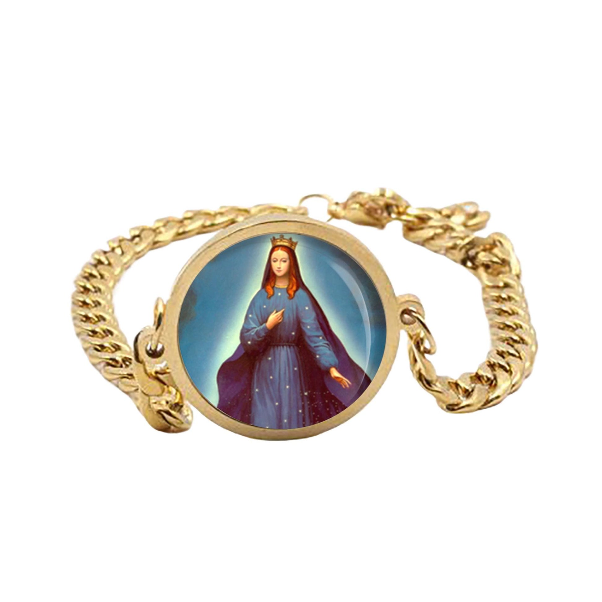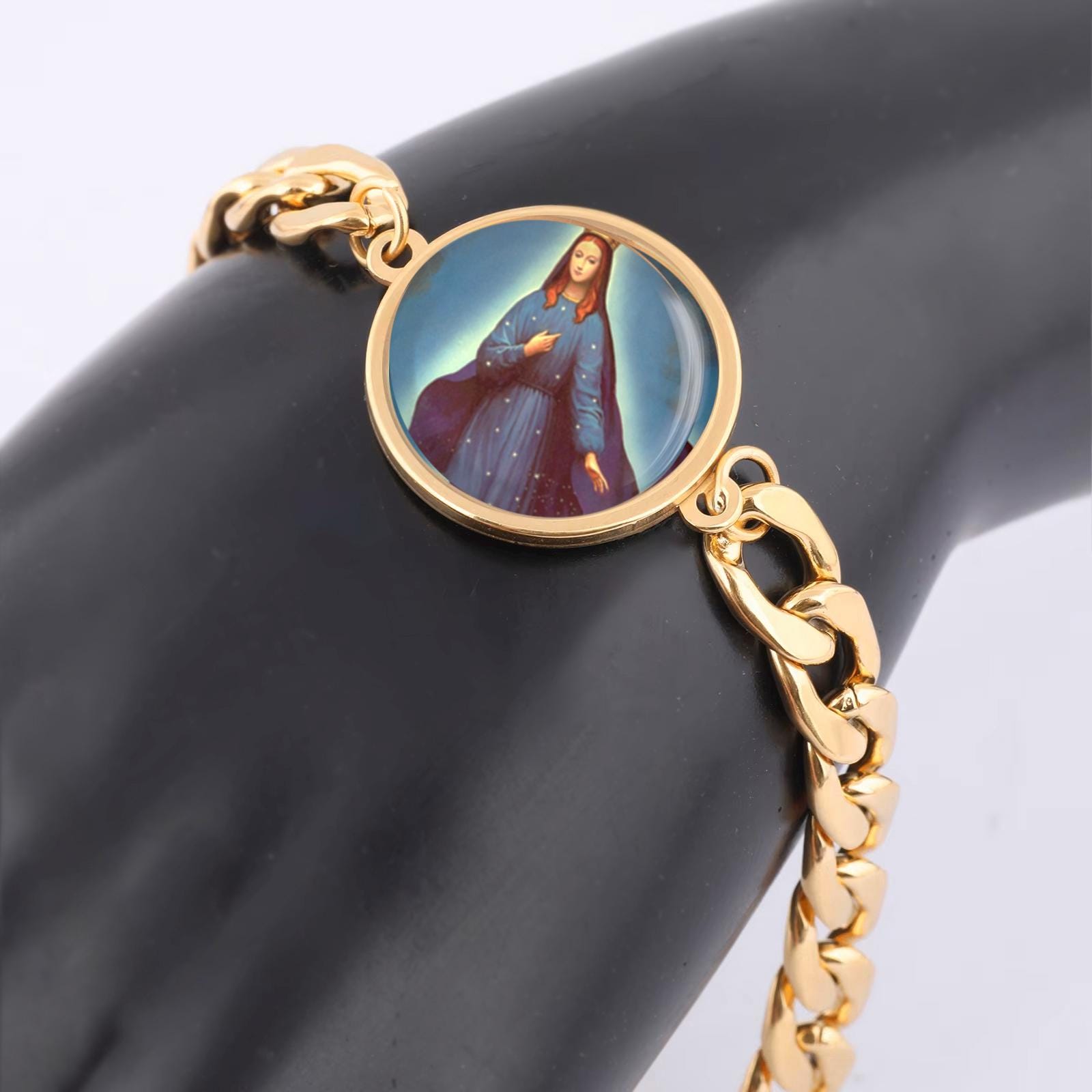 Our Lady Pontmain Curb Bracelet Gold or Silver tone Religious Jewelry Simple Chain