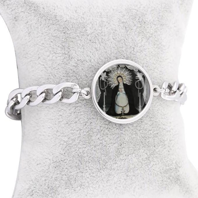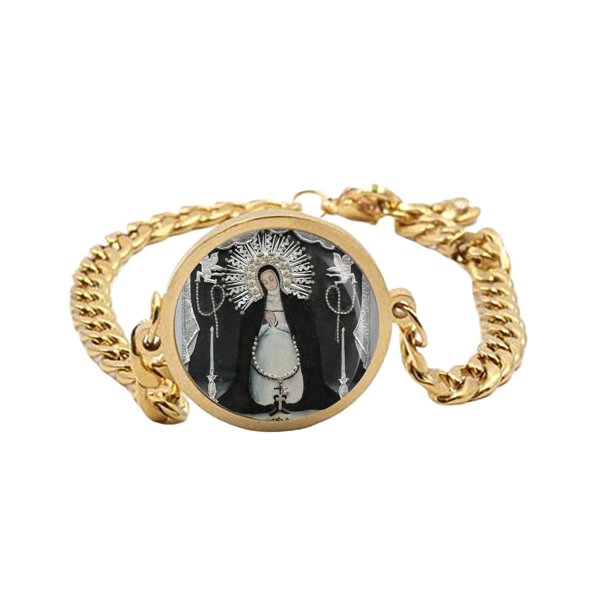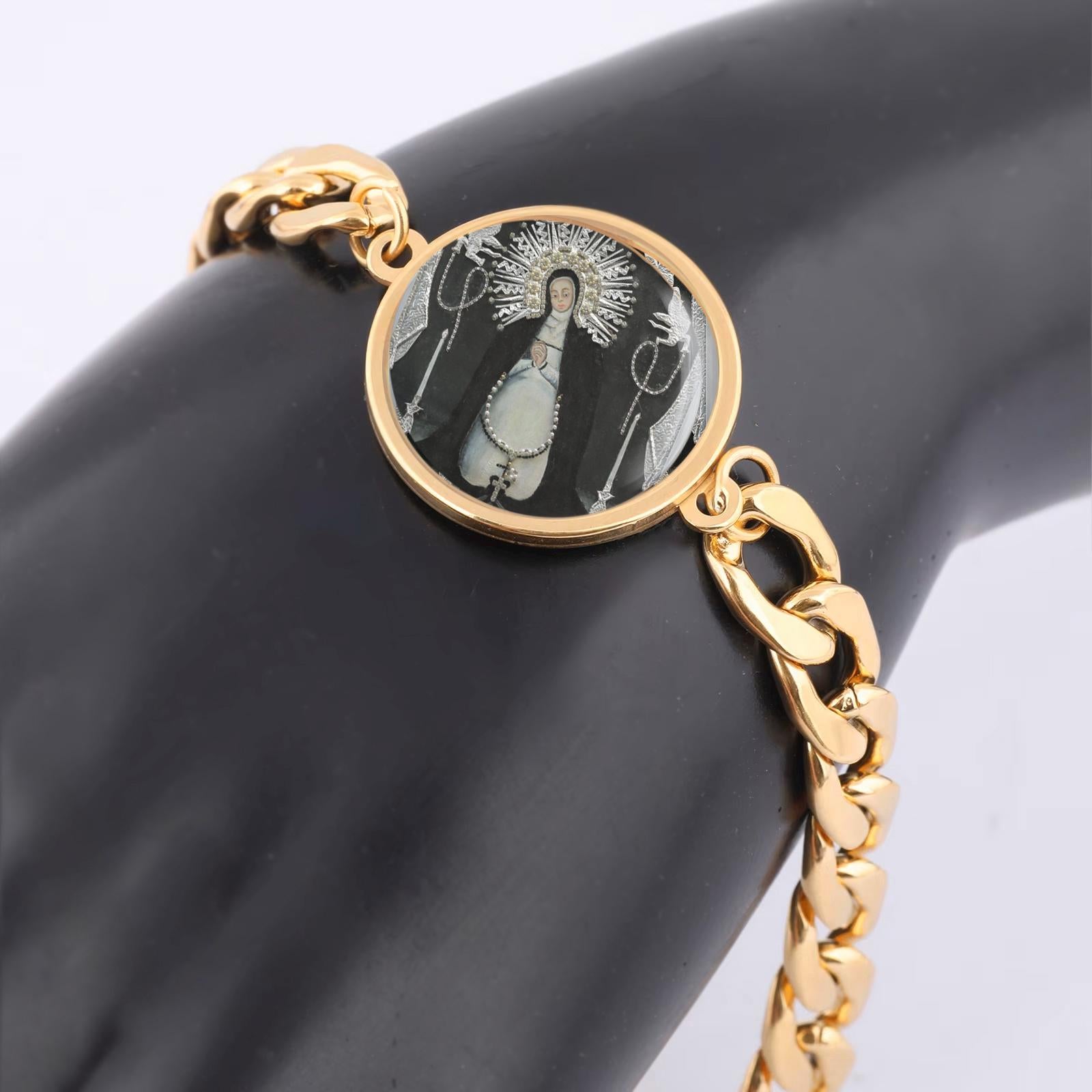 Our Lady Porta Vaga Soledad Mary Curb Bracelet Gold or Silver tone Religious Jewelry Simple Chain