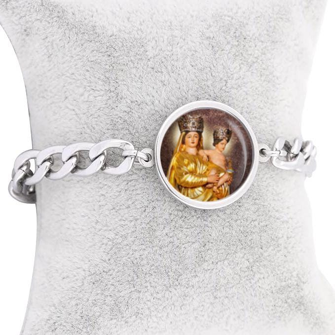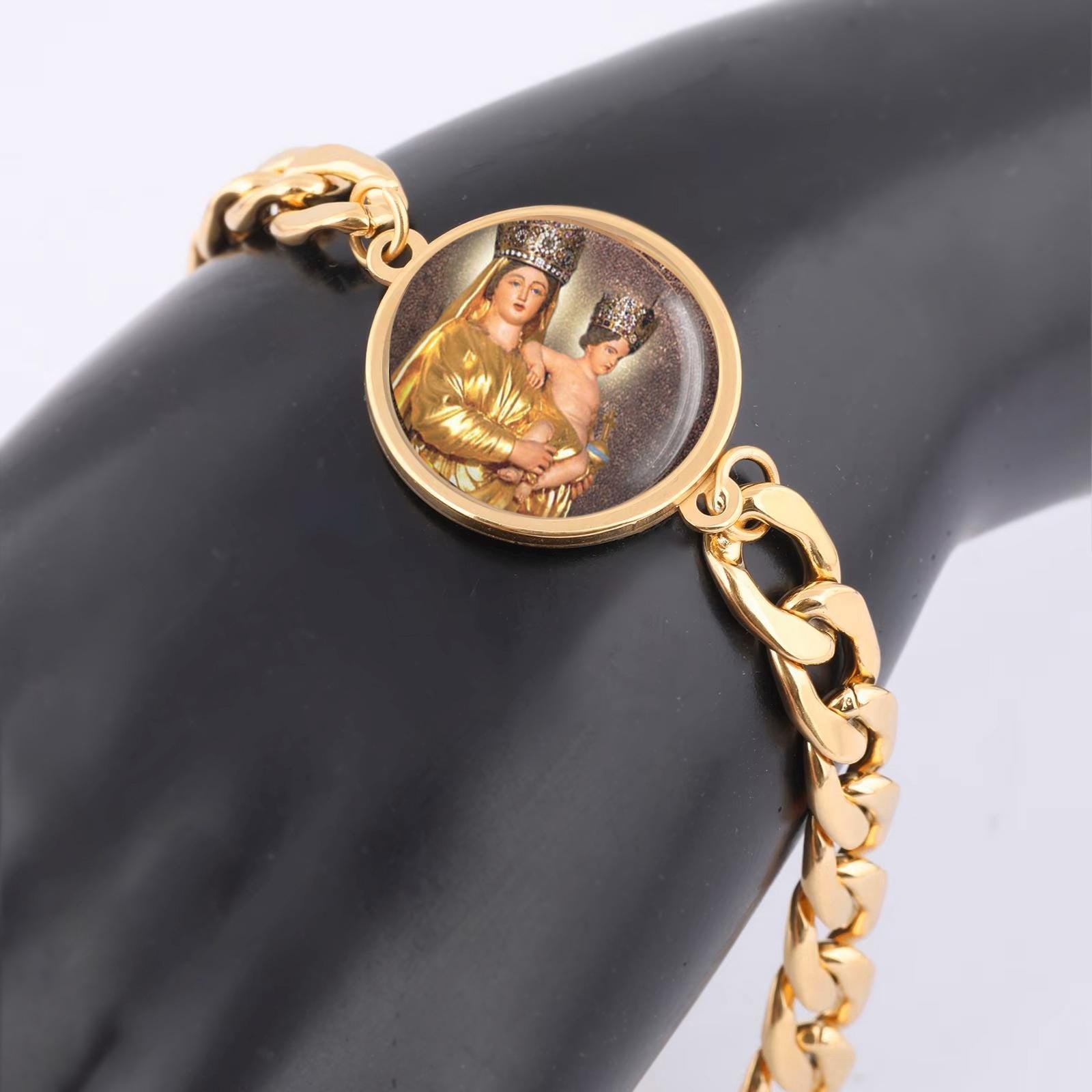 Our Lady Prompt Succor Curb Bracelet Gold or Silver tone Religious Jewelry Simple Chain