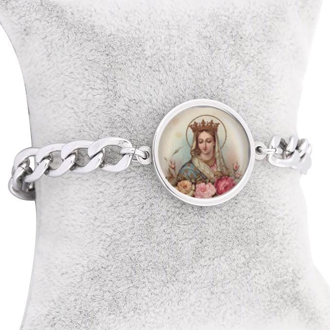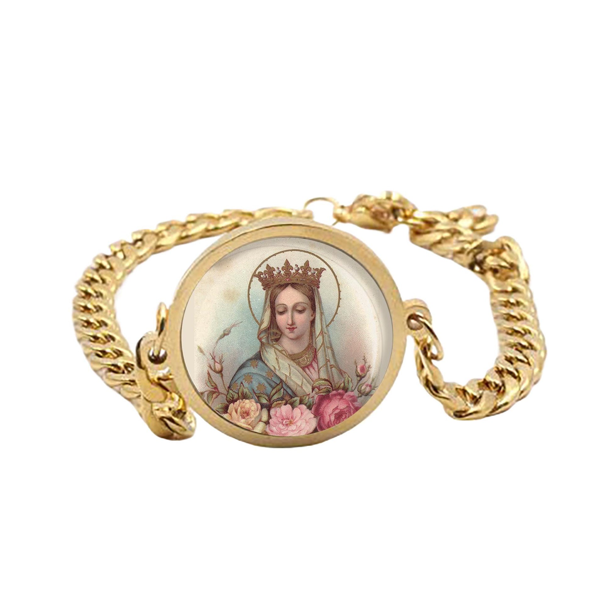 Our Lady Queen Of The Most Holy Rosary Mary Curb Bracelet Gold or Silver tone Religious Jewelry Simple Chain