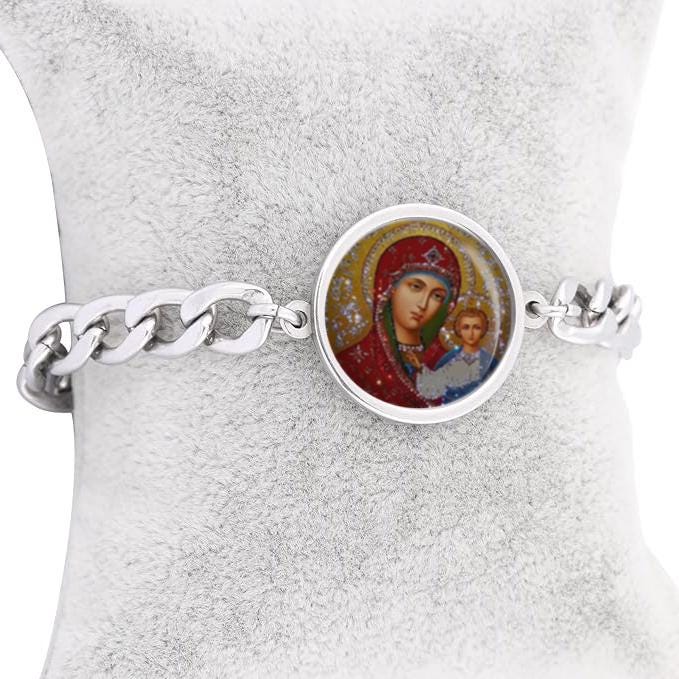 Our Lady Red Curb Bracelet Gold or Silver tone Religious Jewelry Simple Chain