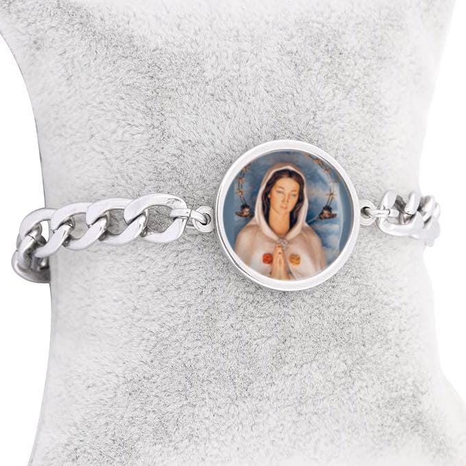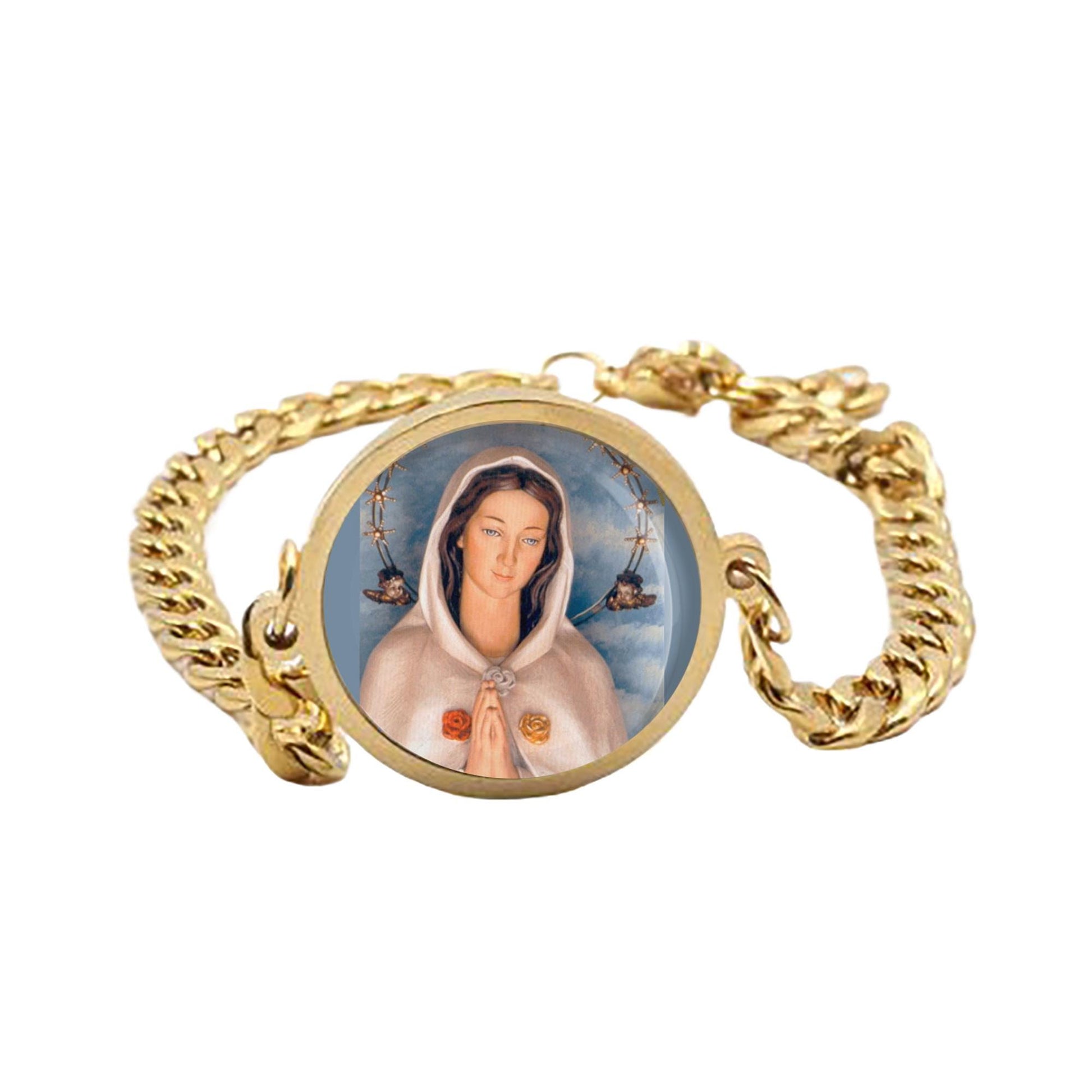 Our Lady Rosa Mystica Mary Curb Bracelet Gold or Silver tone Religious Jewelry Simple Chain