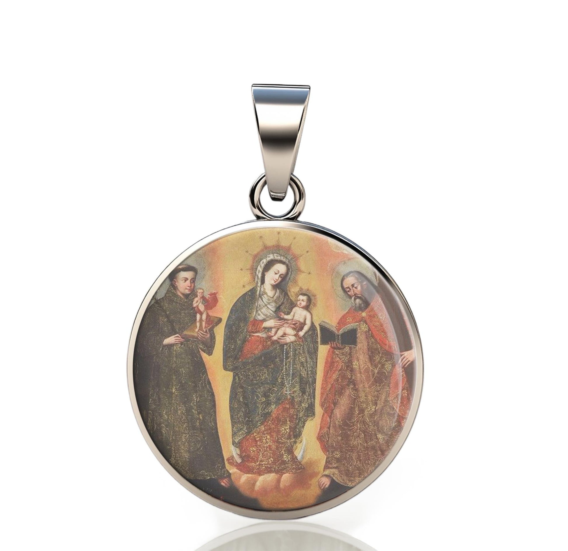 Our Lady Rosary Of Chiquinquira Catholic Mary 925 Sterling Silver Round Pendant Christian Religious Medal Small 20mm