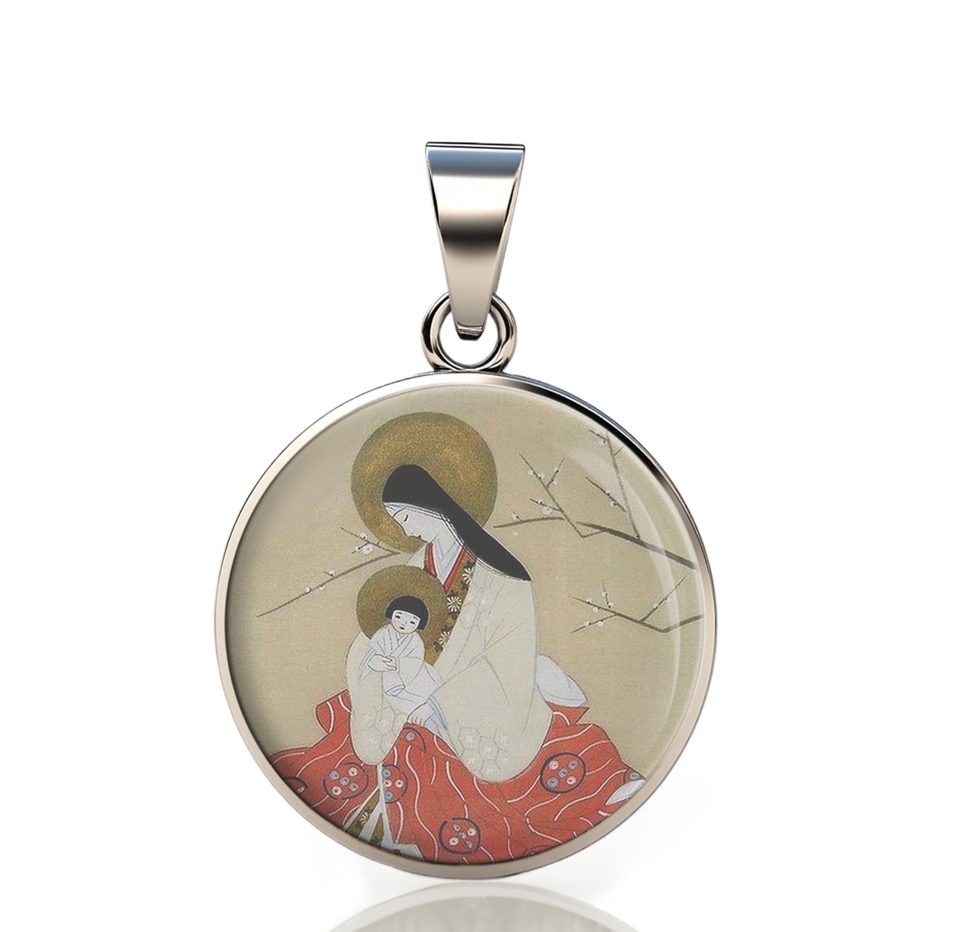 Our Lady Sacura 925 Sterling Silver Round Pendant Christian Religious Medal Small 20mm