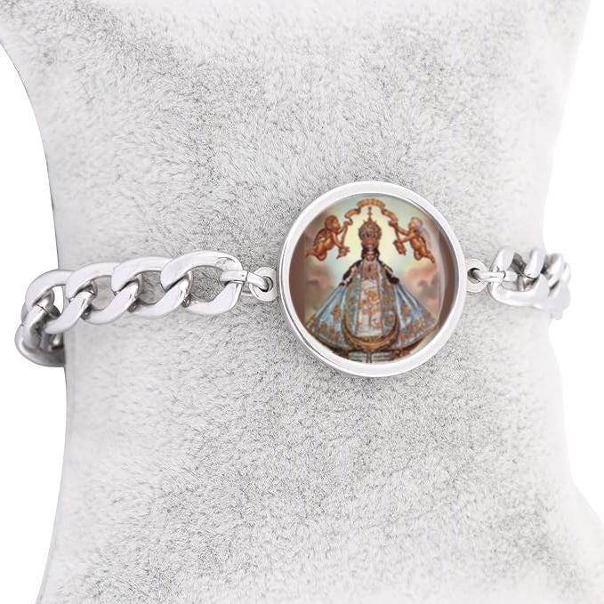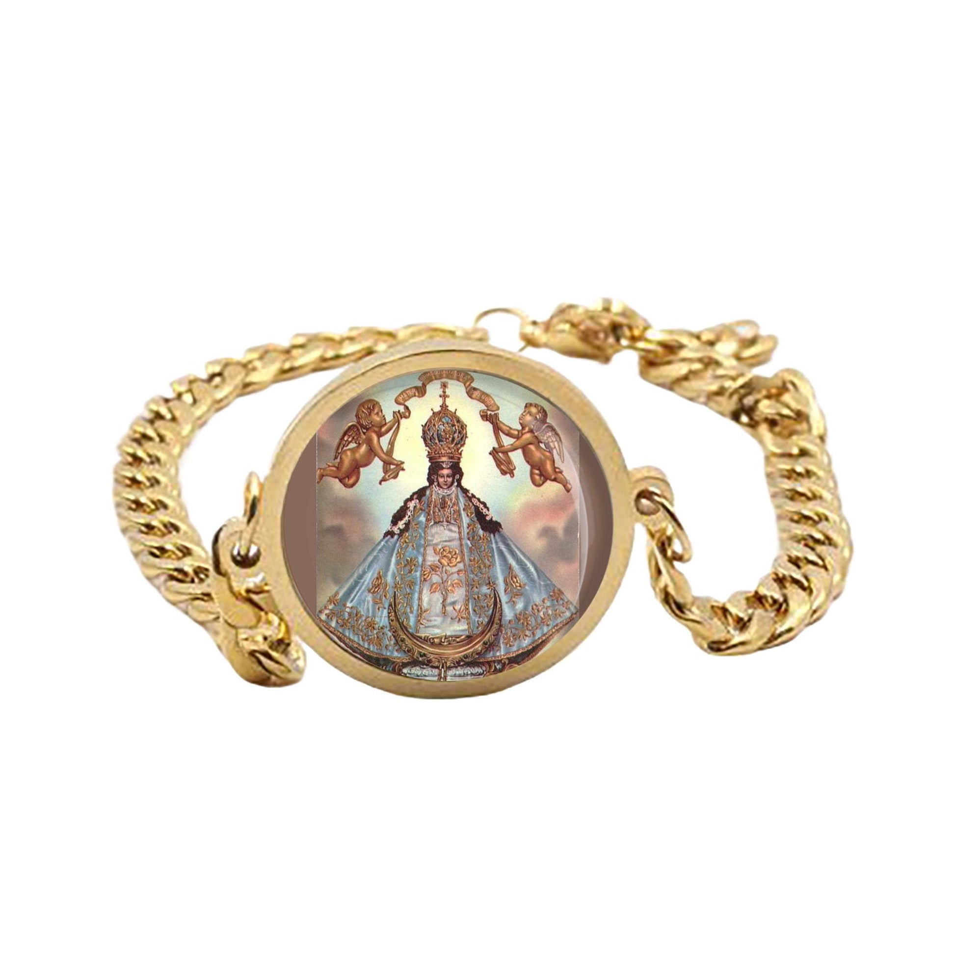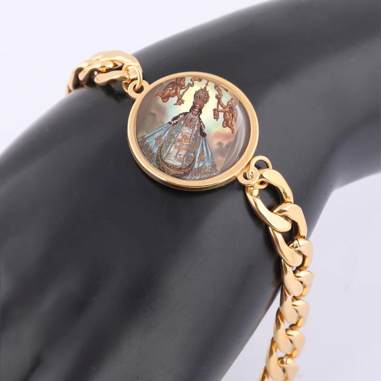 Our Lady San Juan Curb Bracelet Gold or Silver tone Religious Jewelry Simple Chain