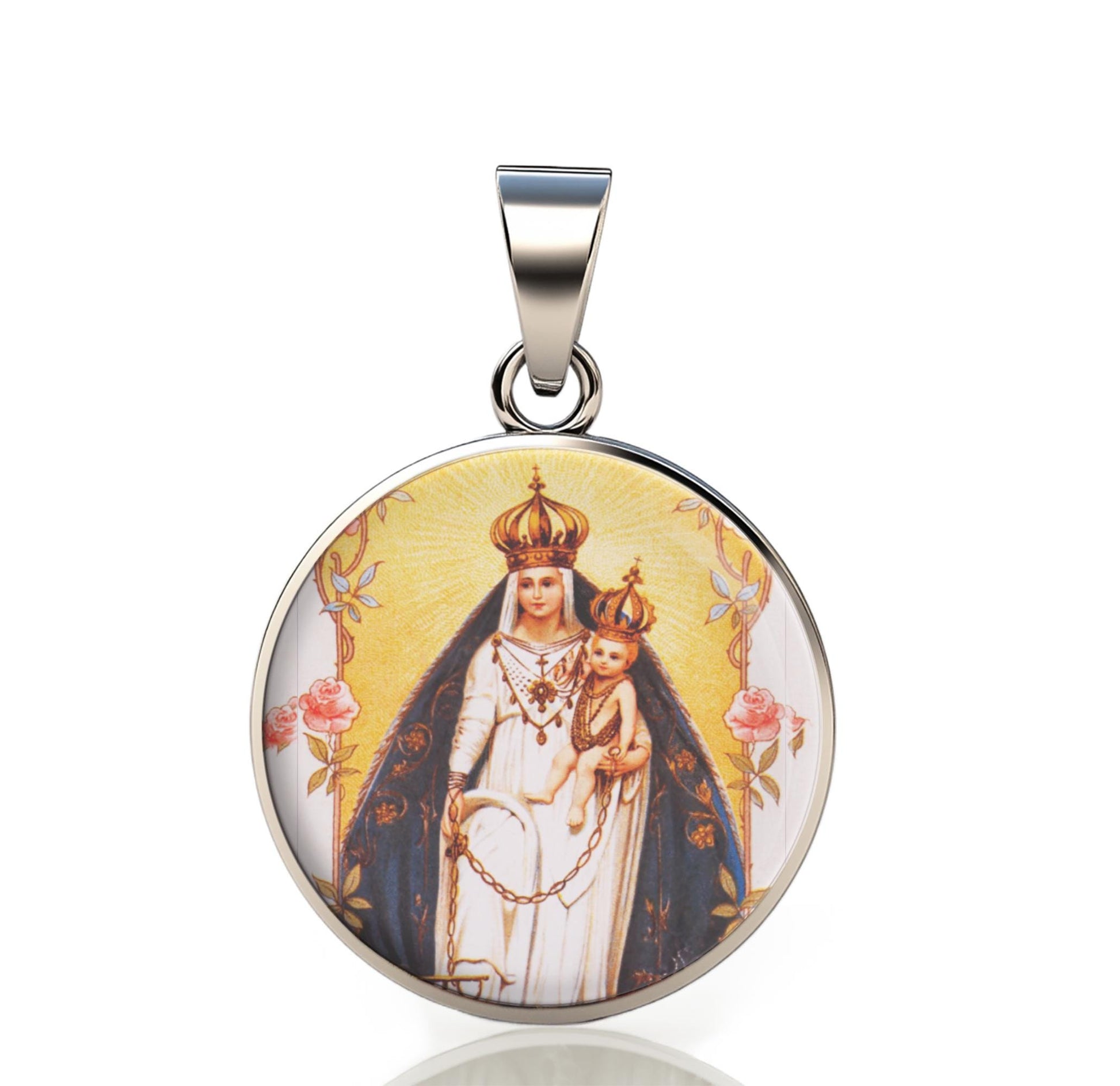 Our Lady Sea And Liberty 925 Sterling Silver Round Pendant Christian Religious Medal Small 20mm