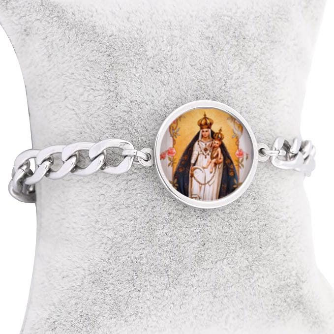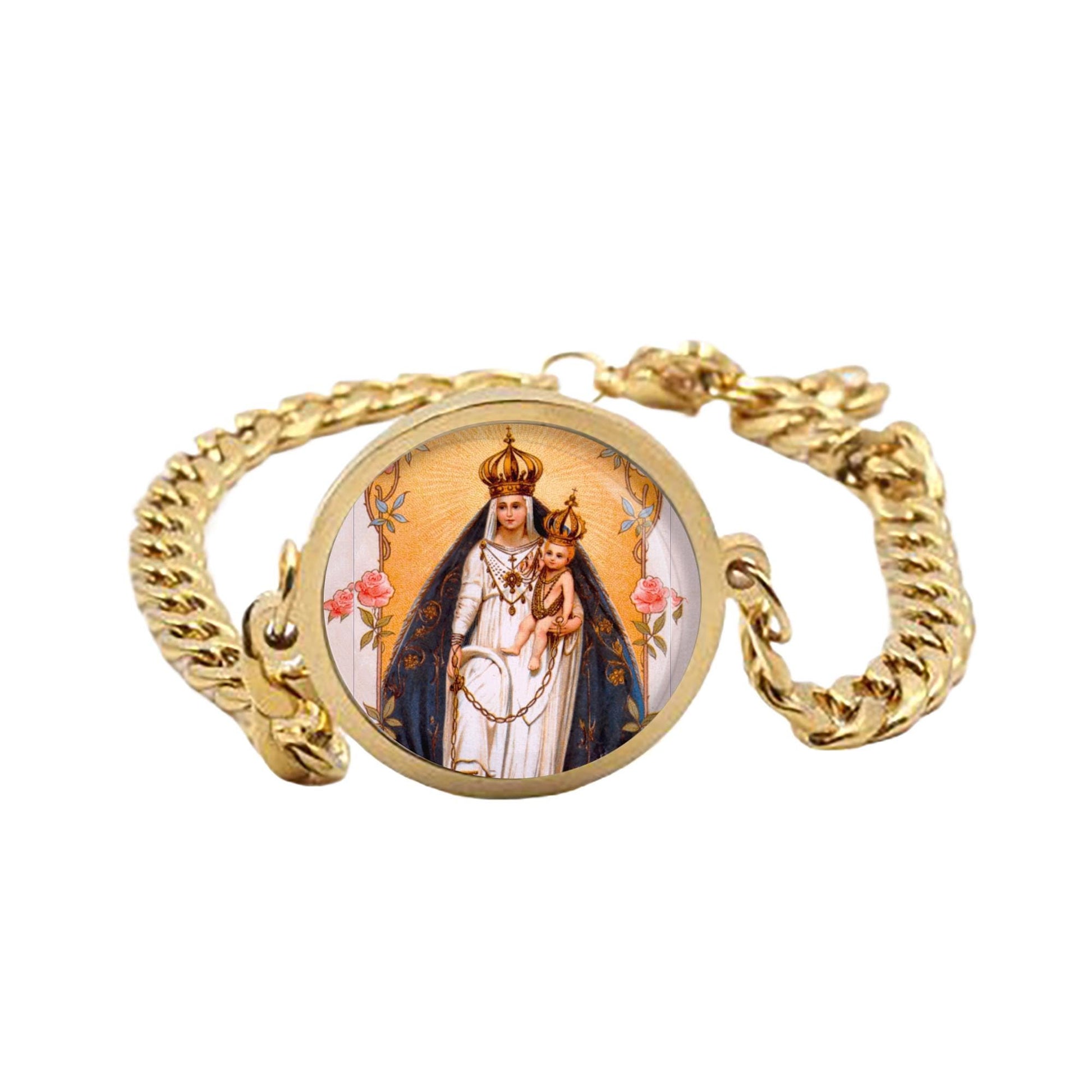 Our Lady Sea And Liberty Curb Bracelet Gold or Silver tone Religious Jewelry Simple Chain