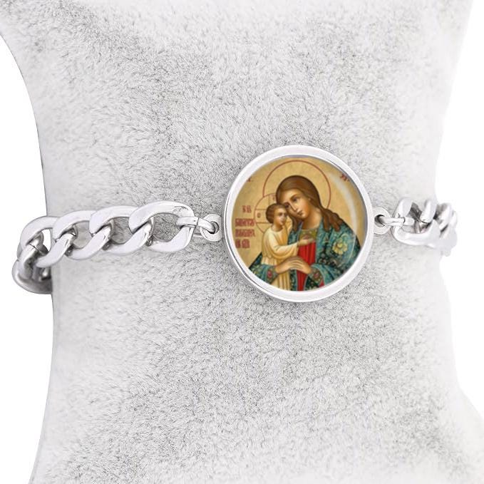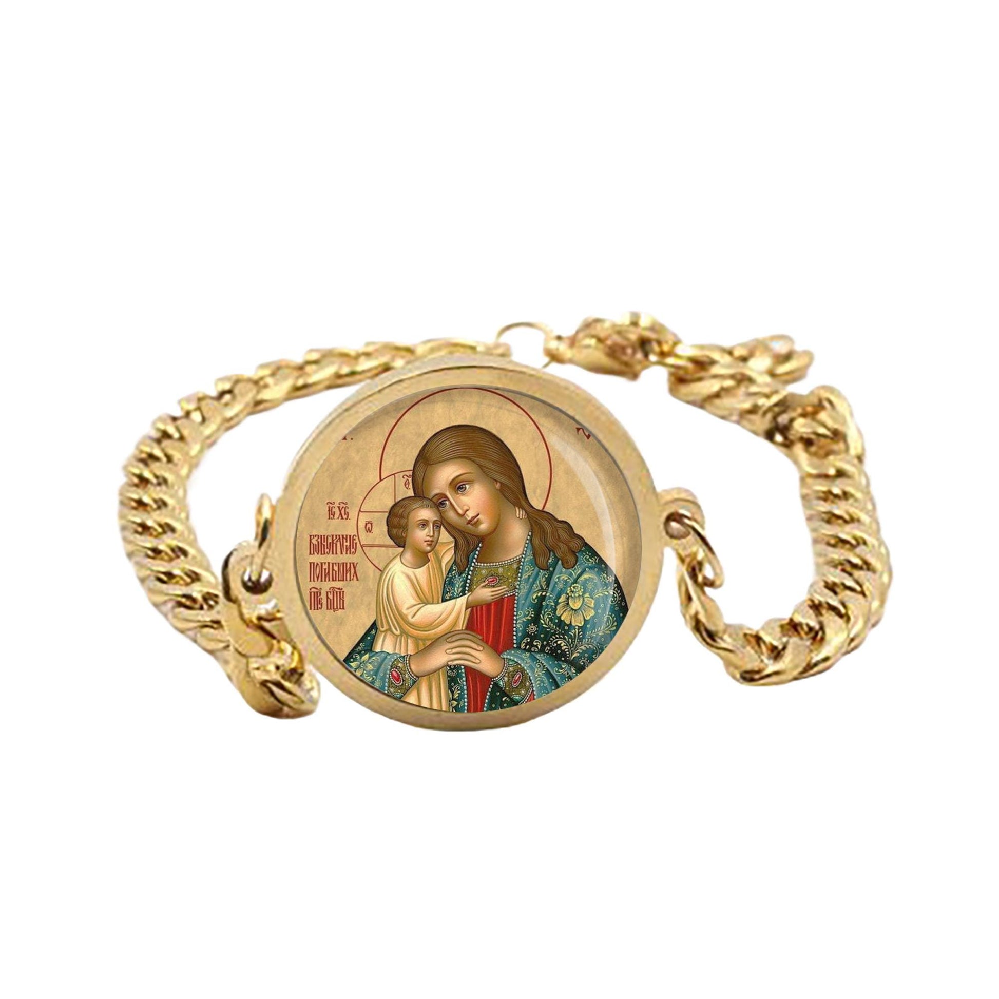 Our Lady Search of The Perishing Vzyskanie Pogibshih Curb Bracelet Gold or Silver tone Religious Jewelry Simple Chain
