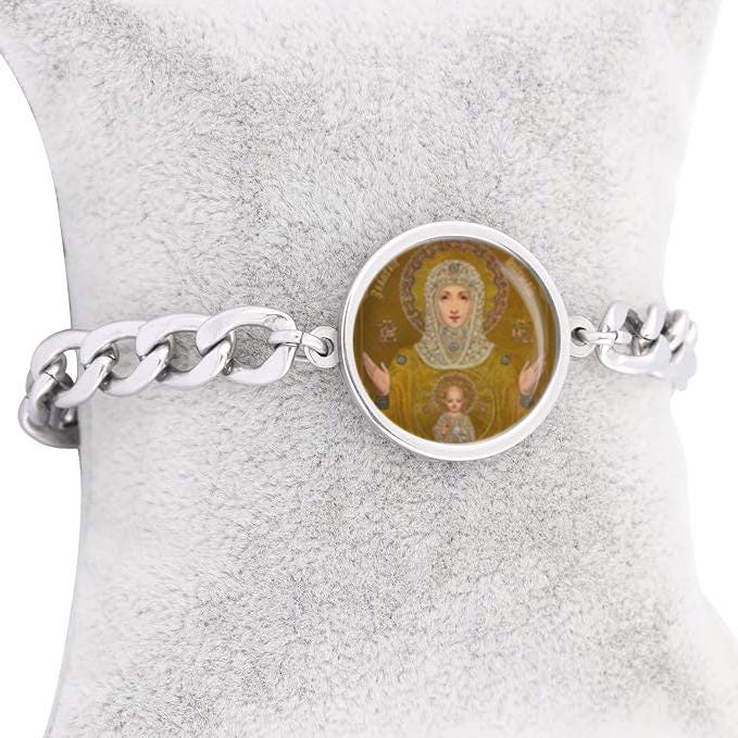 Our Lady Sign Curb Bracelet Gold or Silver tone Religious Jewelry Simple Chain