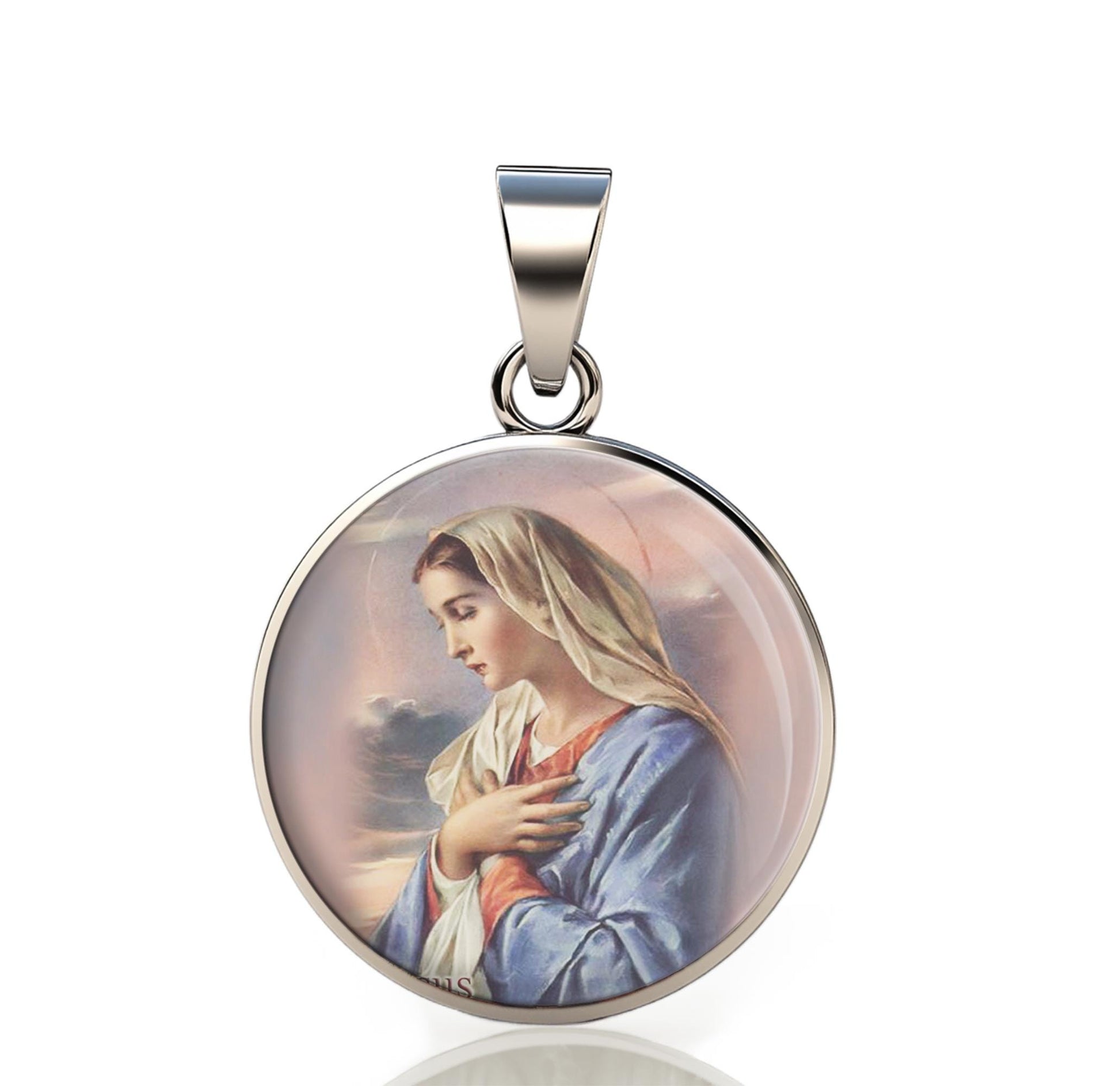 Our Lady Sorrow Mary 925 Sterling Silver Round Pendant Christian Religious Medal Small 20mm