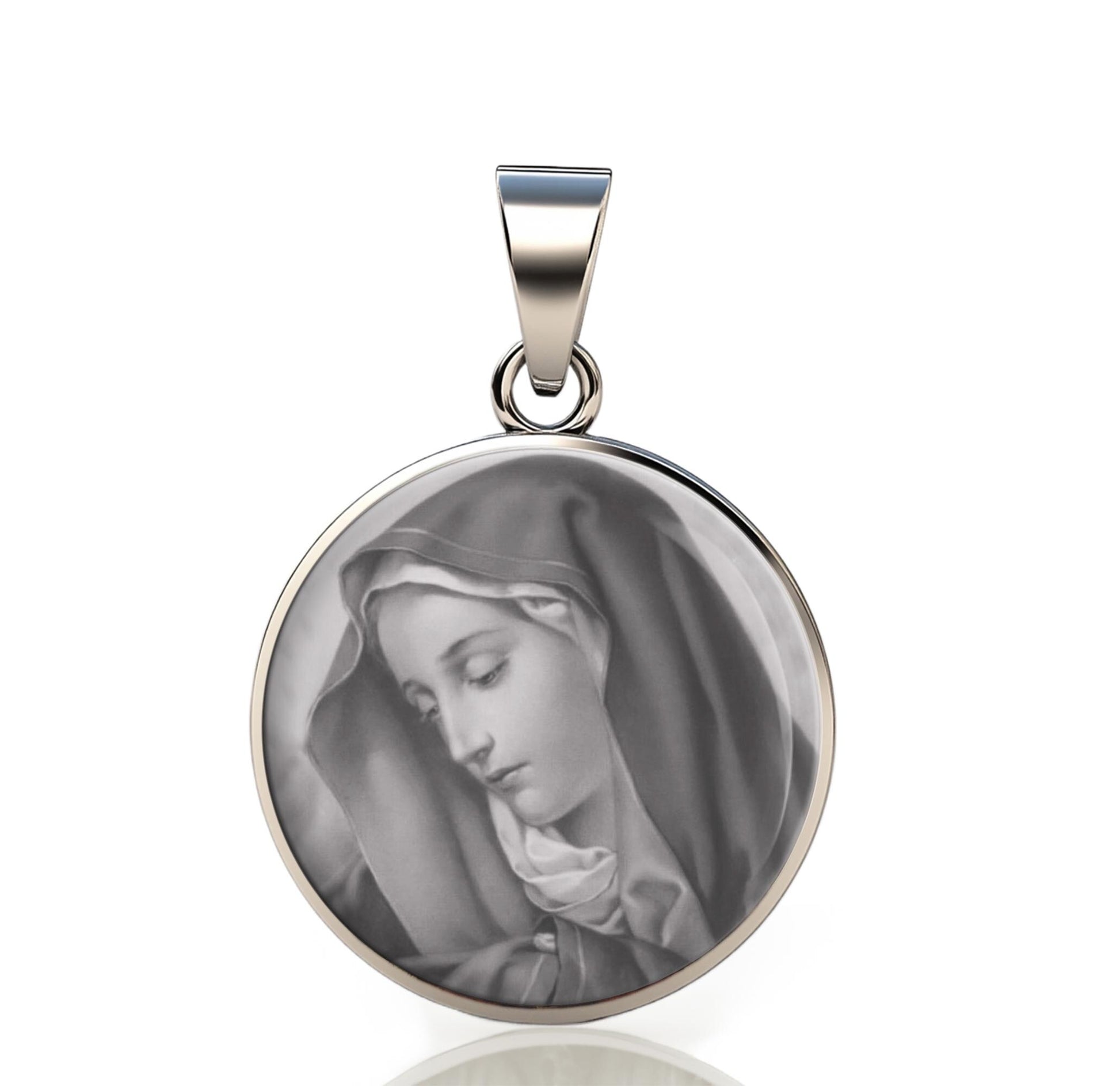 Our Lady Sorrows Black Mother Mary 925 Sterling Silver Round Pendant Christian Religious Medal Small 20mm