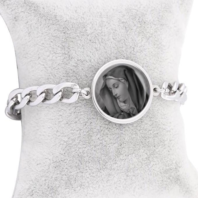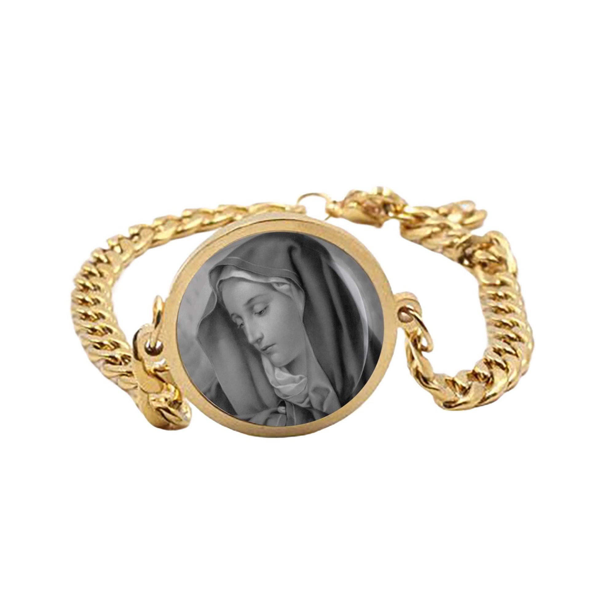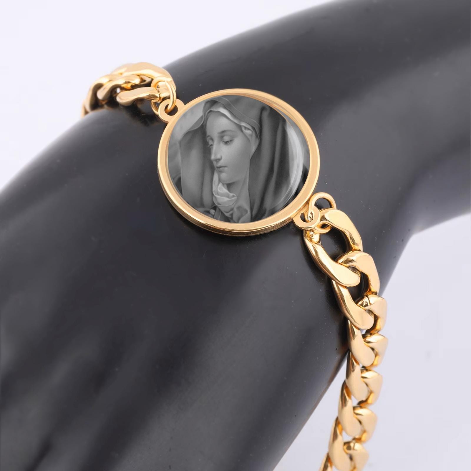 Our Lady Sorrows Black Mother Mary Curb Bracelet Gold or Silver tone Religious Jewelry Simple Chain