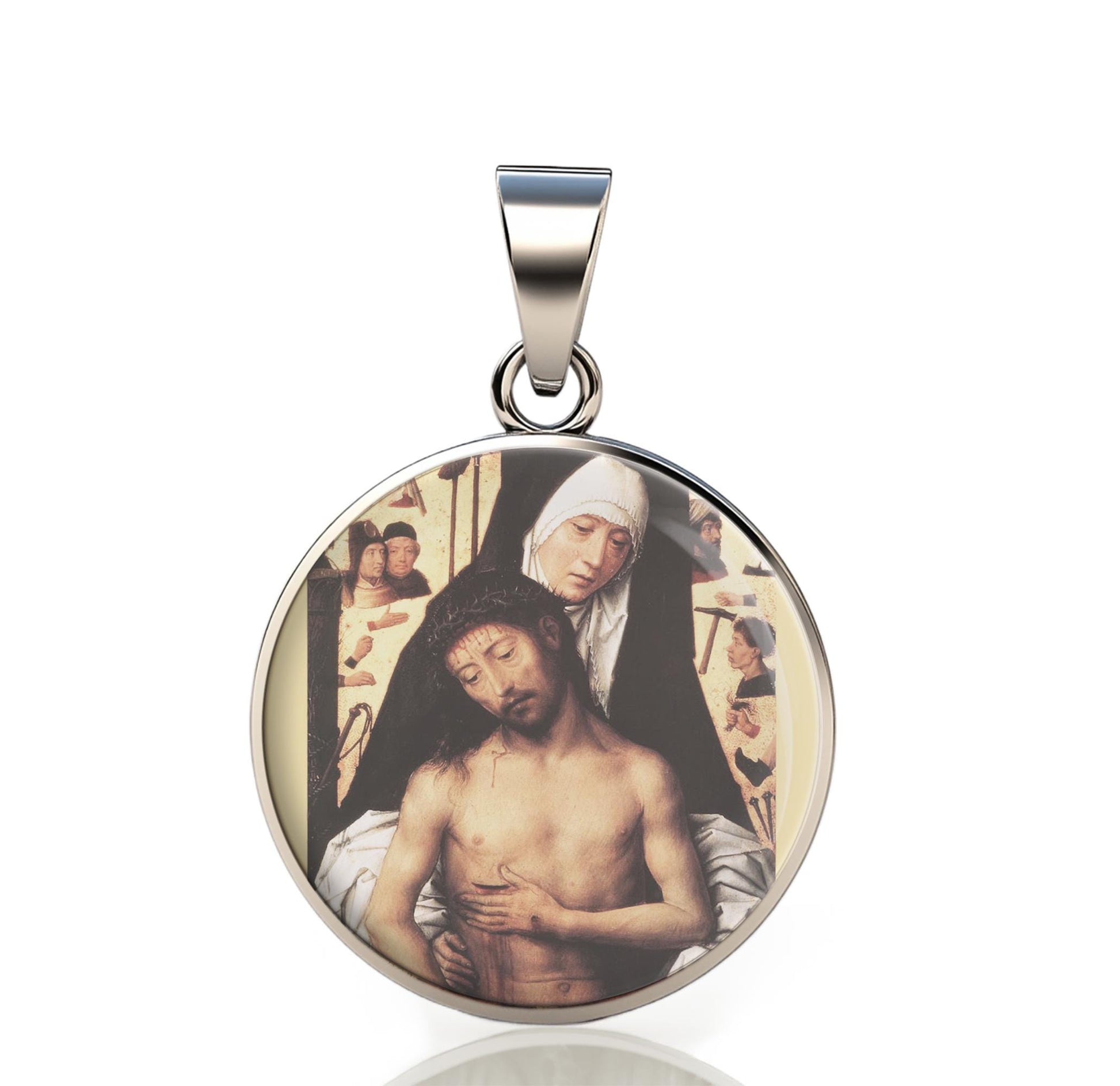 Our Lady Sorrows Mother 925 Sterling Silver Round Pendant Christian Religious Medal Small 20mm