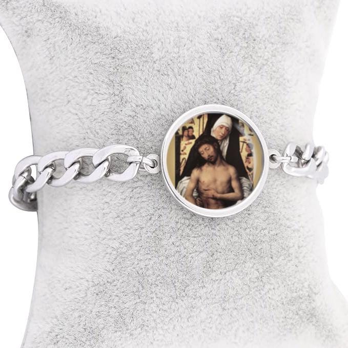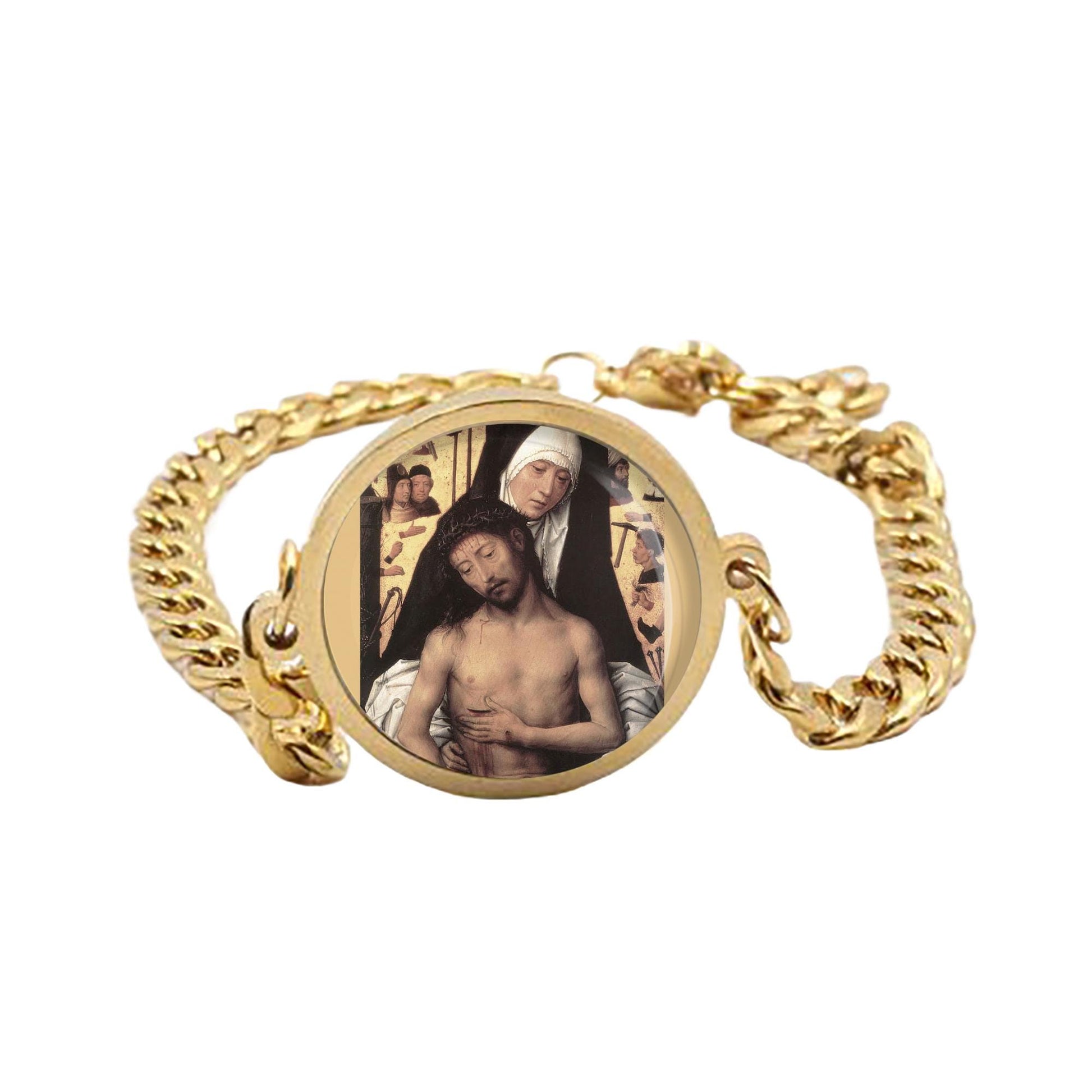Our Lady Sorrows Mother Curb Bracelet Gold or Silver tone Religious Jewelry Simple Chain