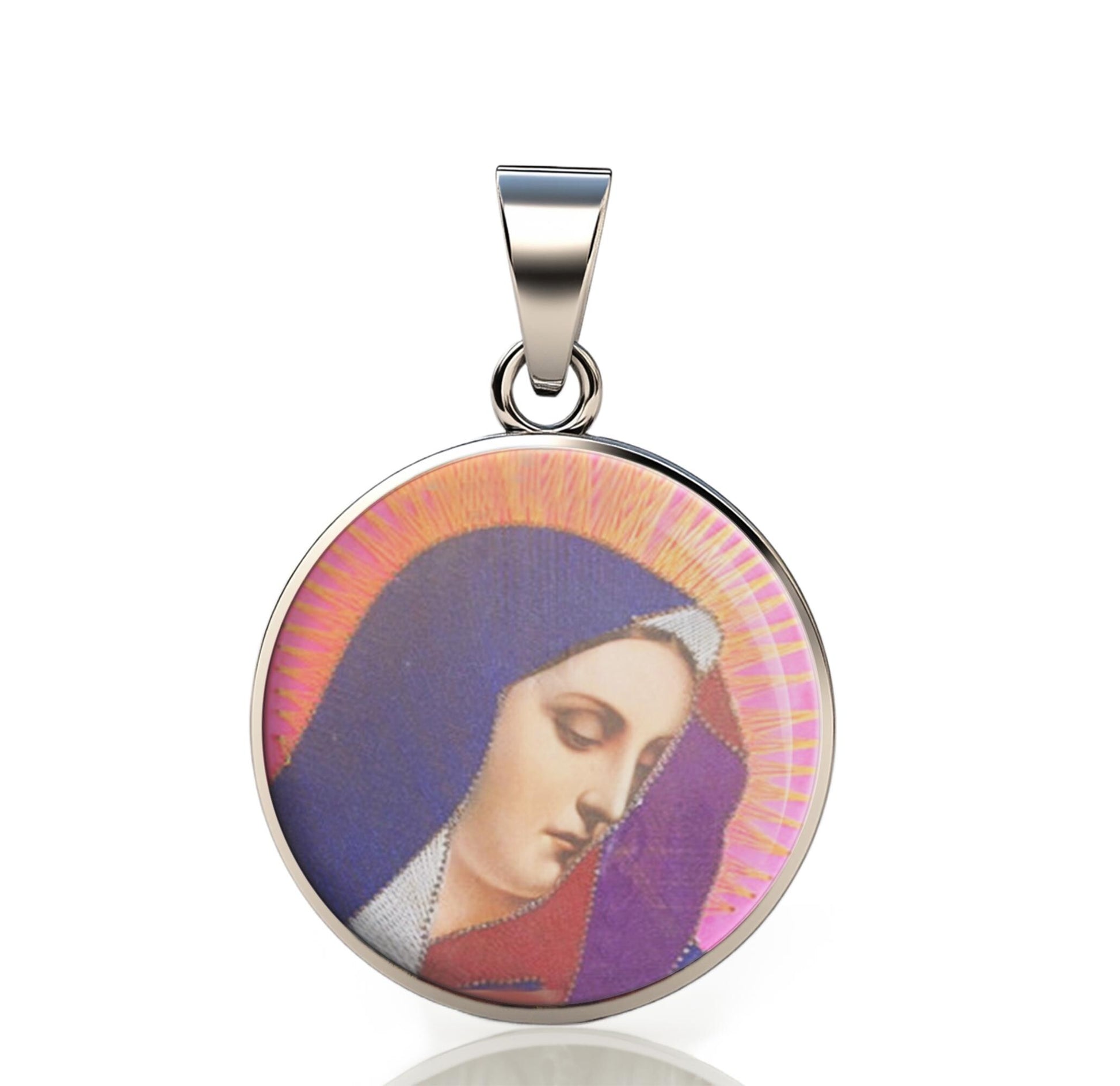 Our Lady Sorrows Purple 925 Sterling Silver Round Pendant Christian Religious Medal Small 20mm