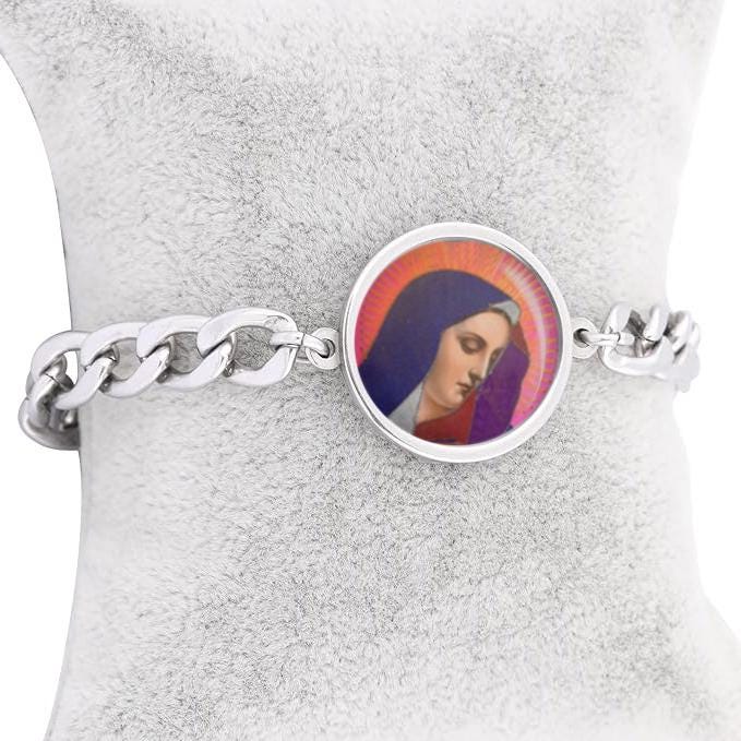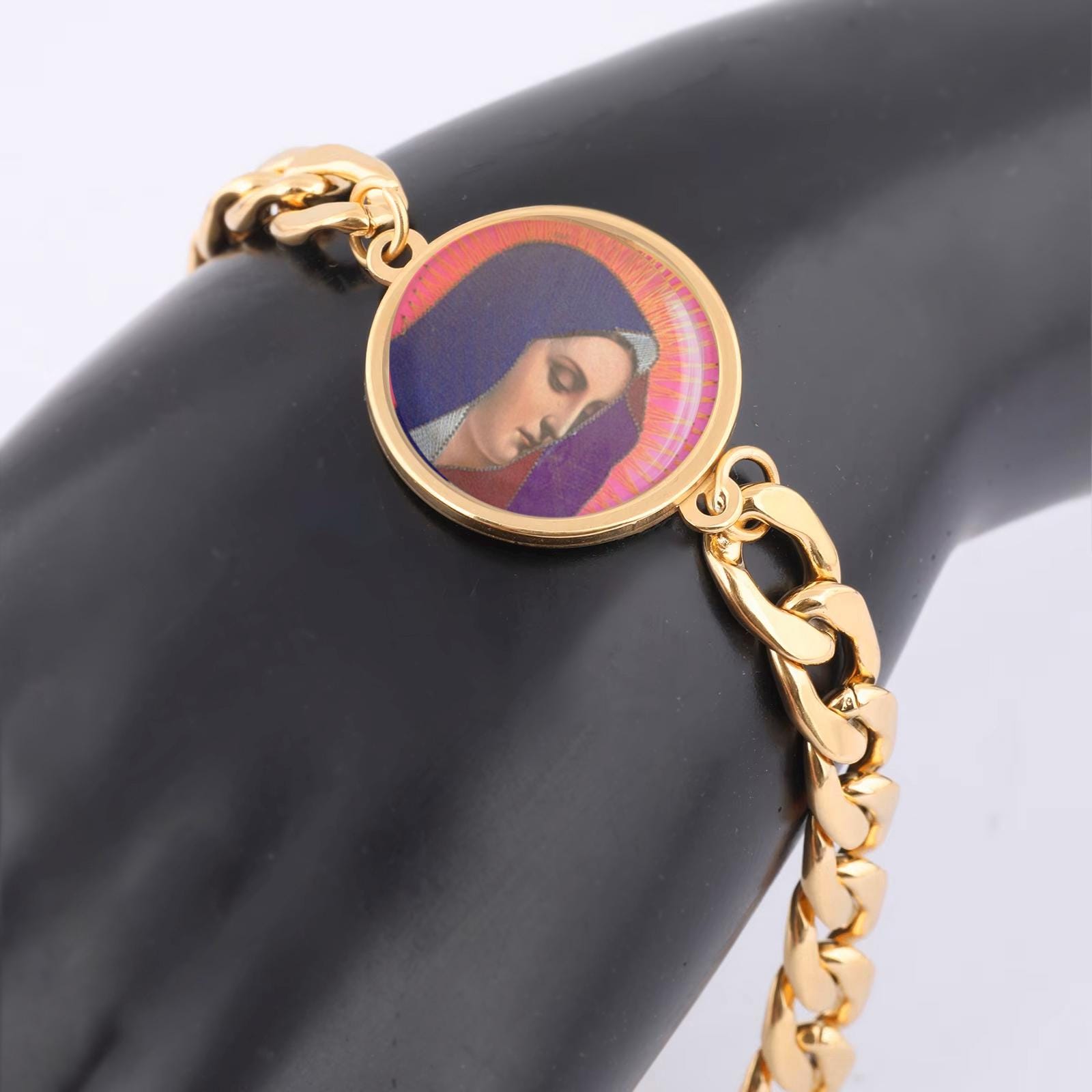 Our Lady Sorrows Purple Curb Bracelet Gold or Silver tone Religious Jewelry Simple Chain