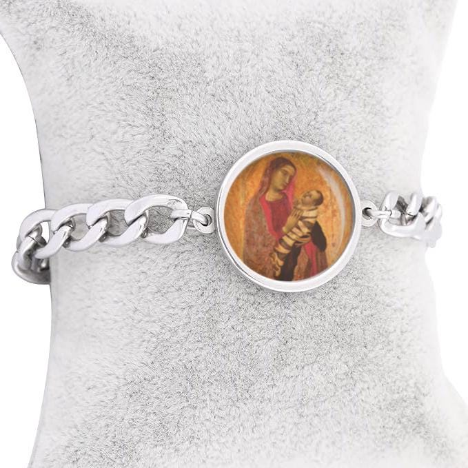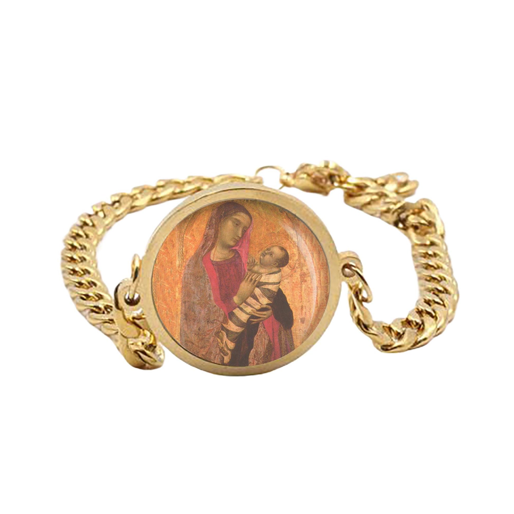 Our Lady Swaddling Madonna And Child Ambrogio Lorenzetti Curb Bracelet Gold or Silver tone Religious Jewelry Simple Chain