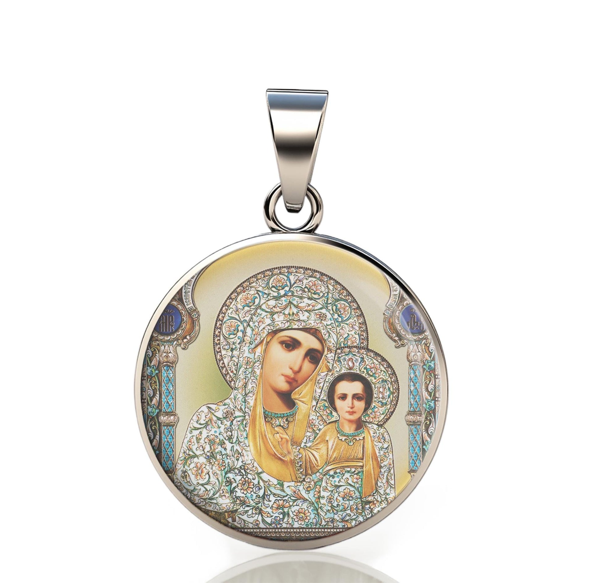 Our Lady Theotokos 925 Sterling Silver Round Pendant Christian Religious Medal Small 20mm