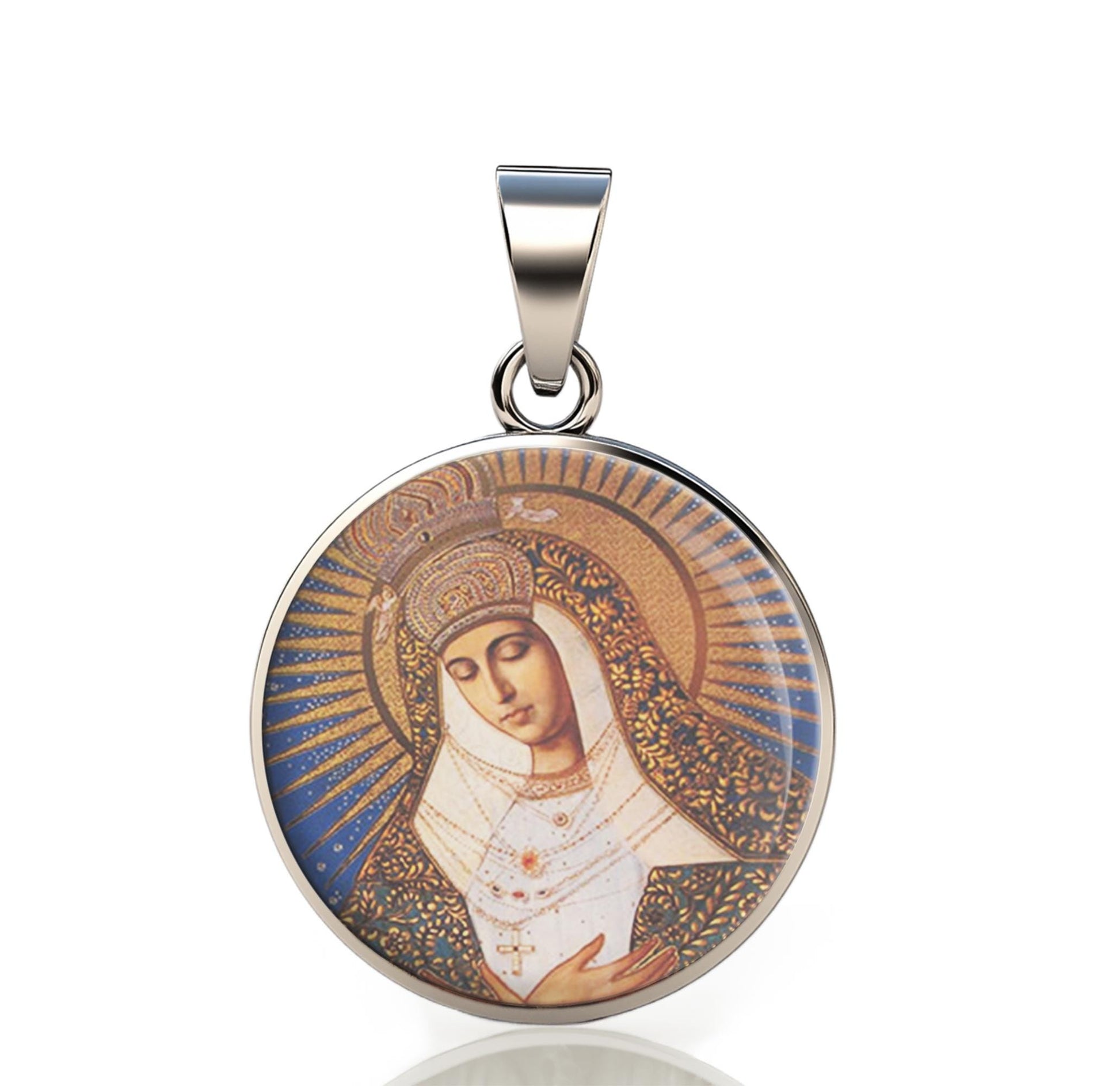 Our Lady Theotokos Mary 925 Sterling Silver I Round Pendant Christian Religious Medal Small 20mm