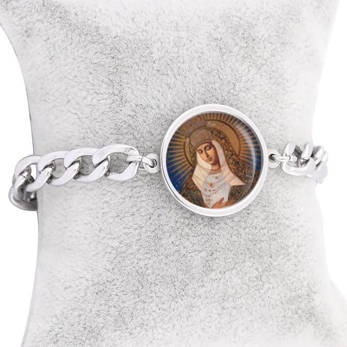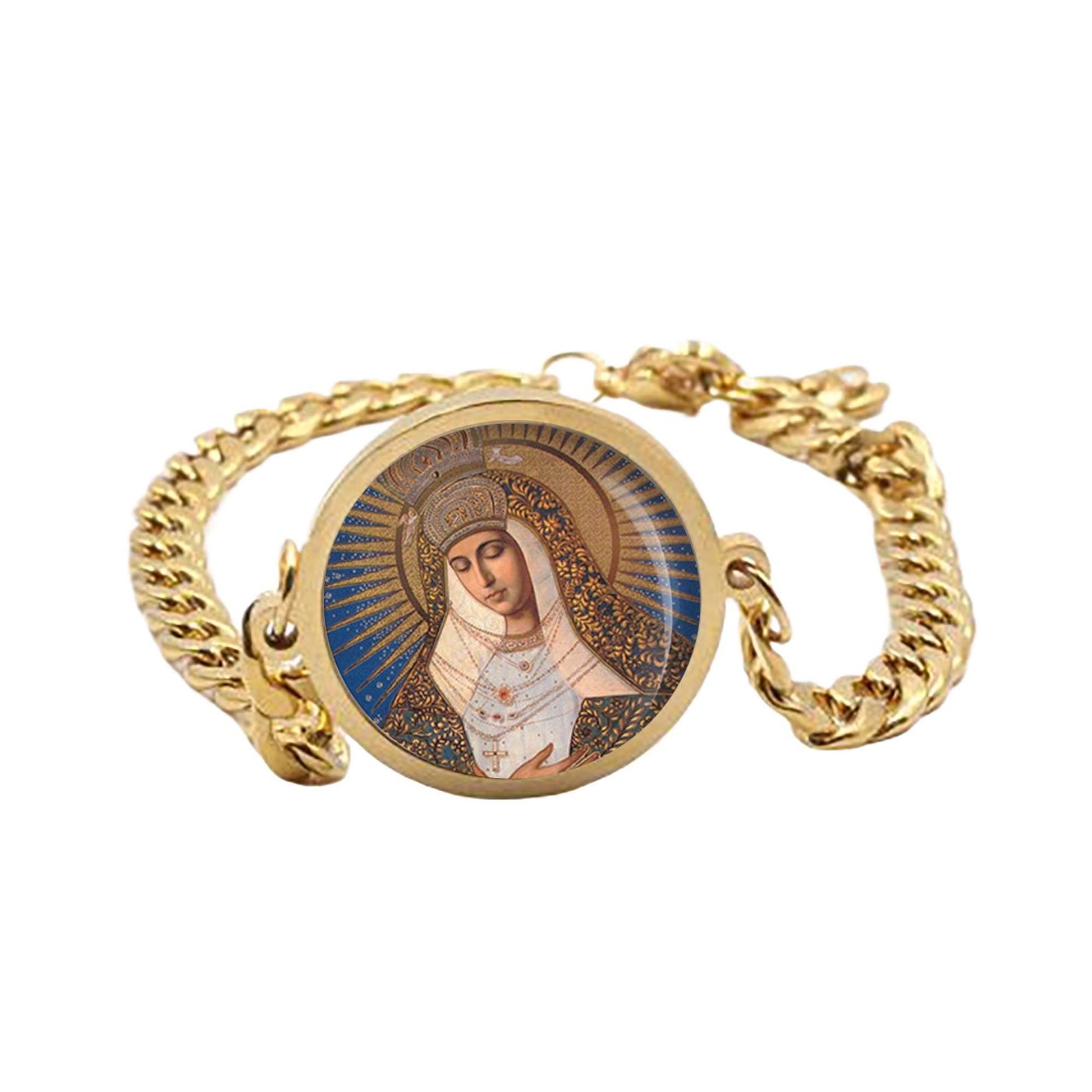Our Lady Theotokos Mary Curb Bracelet Gold or Silver tone Religious Jewelry Simple Chain