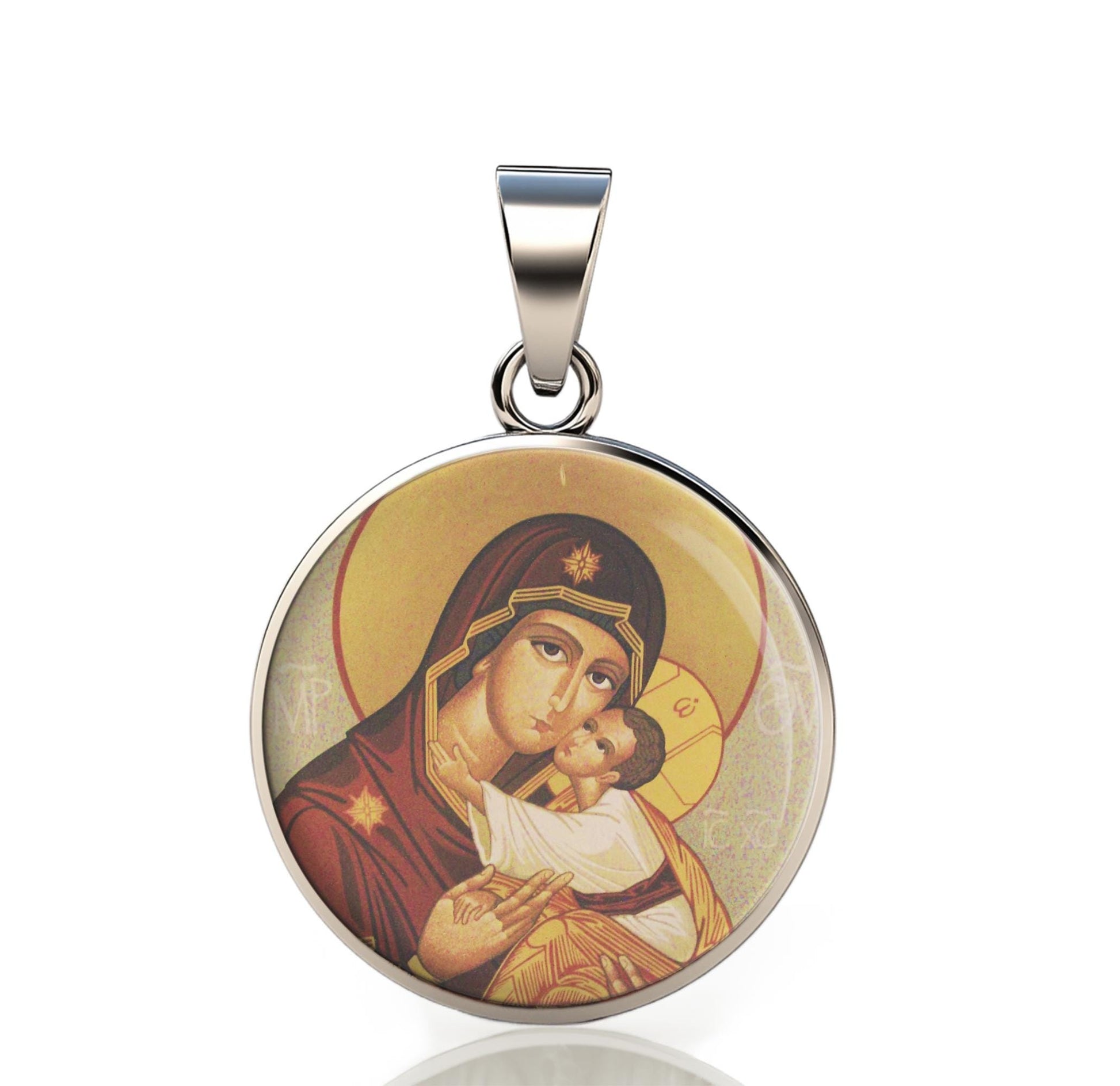 Our Lady Theotokos Mother Of God Orthodox Icon 925 Sterling Silver Round Pendant Christian Religious Medal Small 20mm