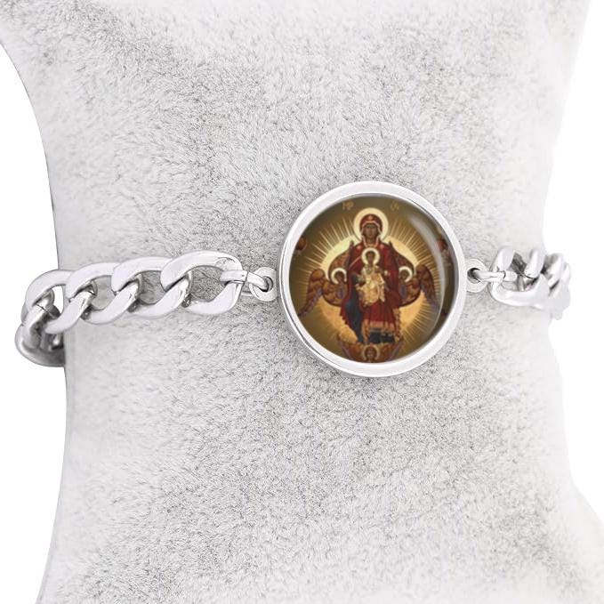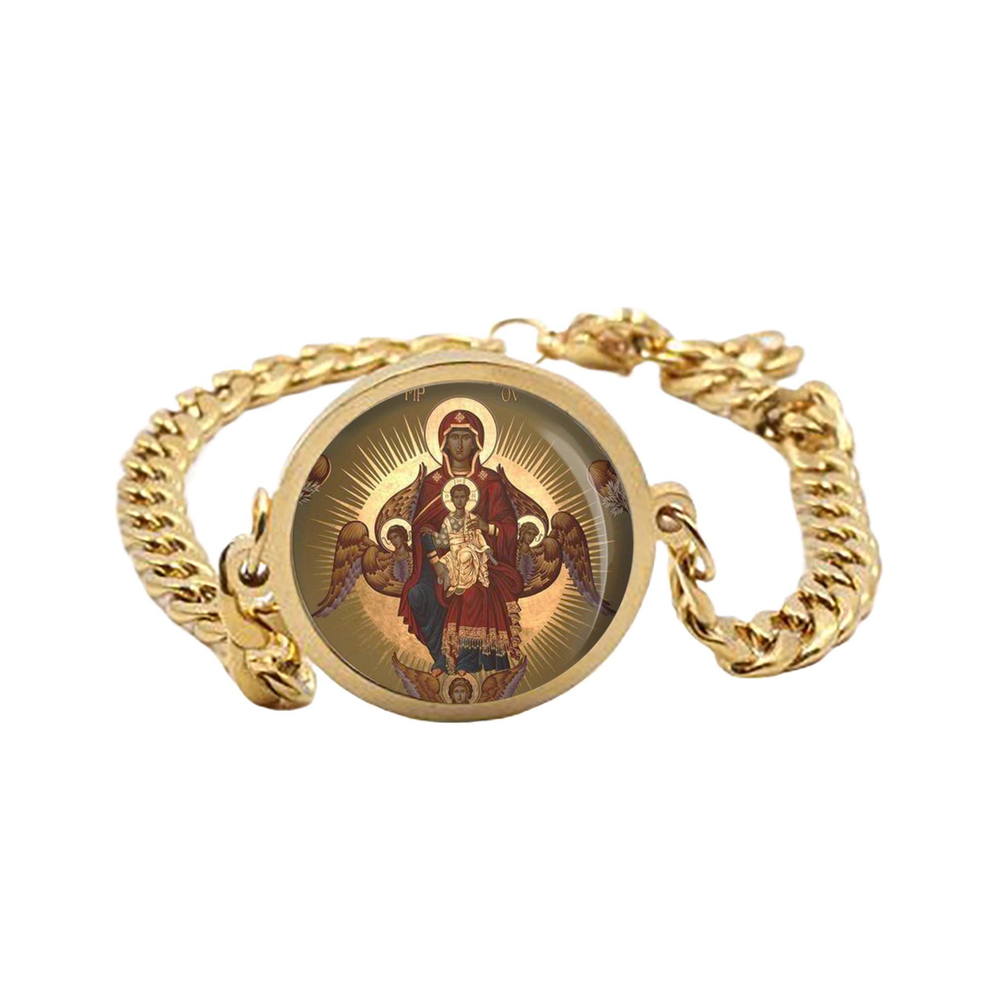 Our Lady Veneration Curb Bracelet Gold or Silver tone Religious Jewelry Simple Chain