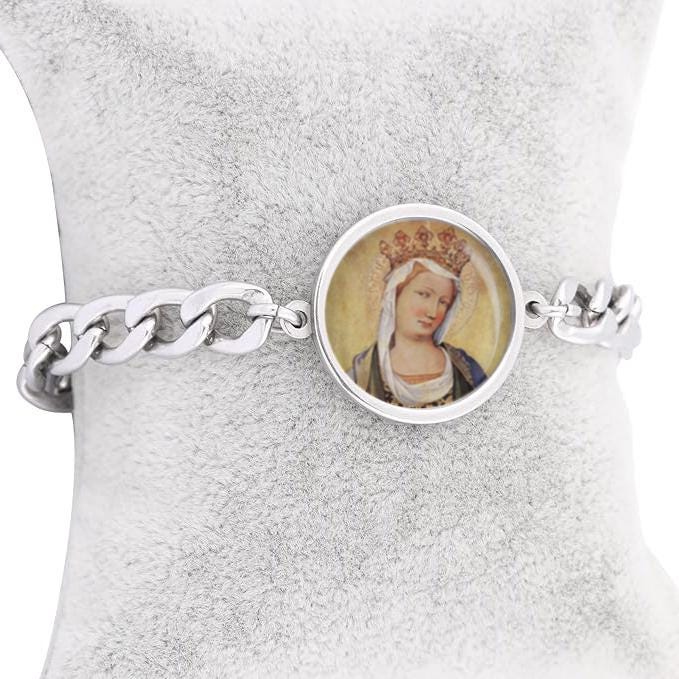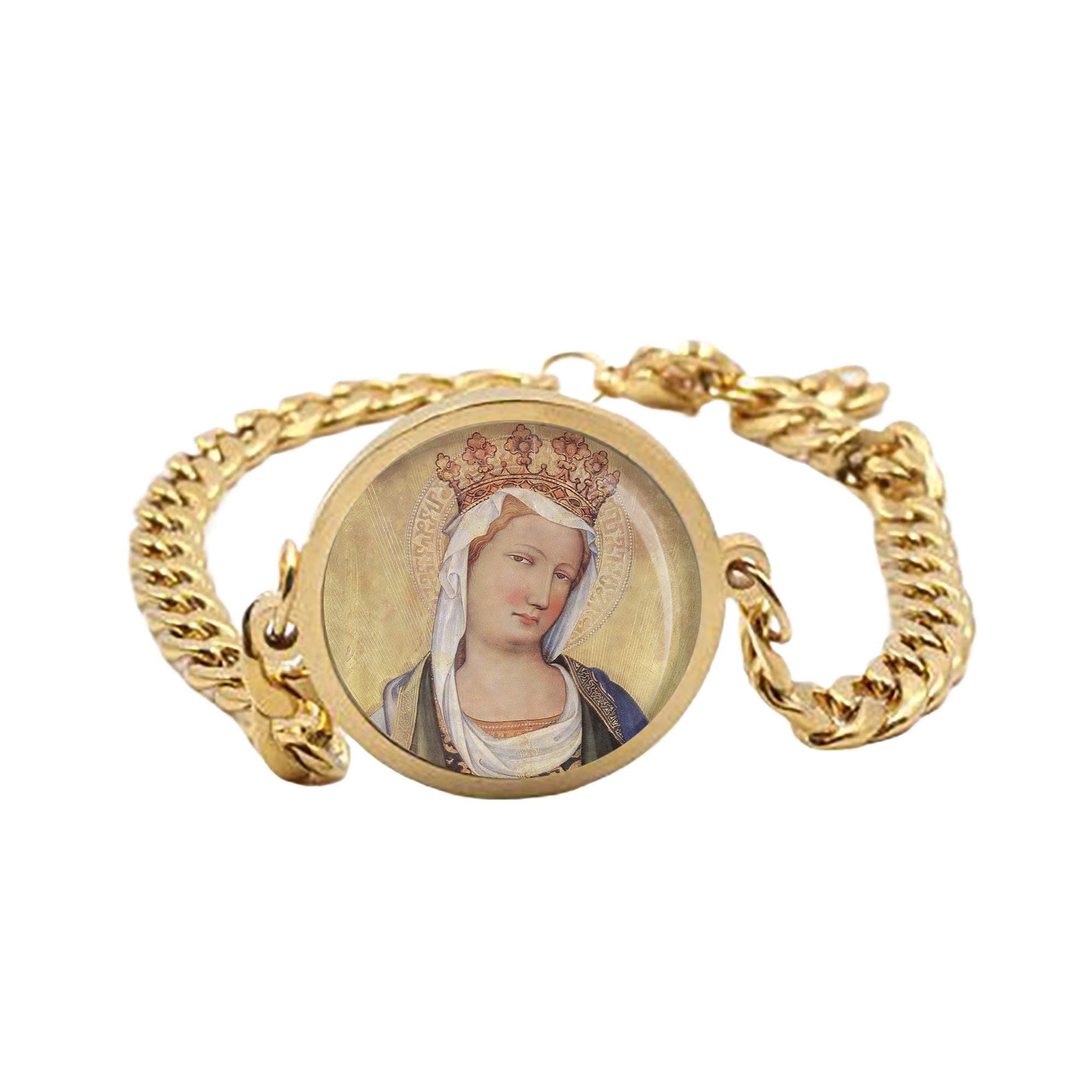 Our Lady Virgin Mary By Master Of The Bambino Vispo Curb Bracelet Gold or Silver tone Religious Jewelry Simple Chain