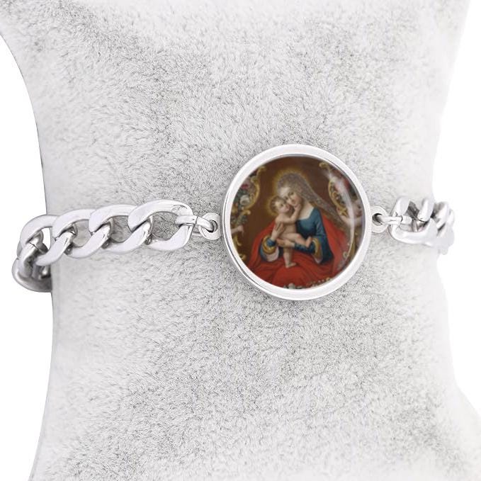 Our Lady Virgin Mary Curb Bracelet Gold or Silver tone Religious Jewelry Simple Chain