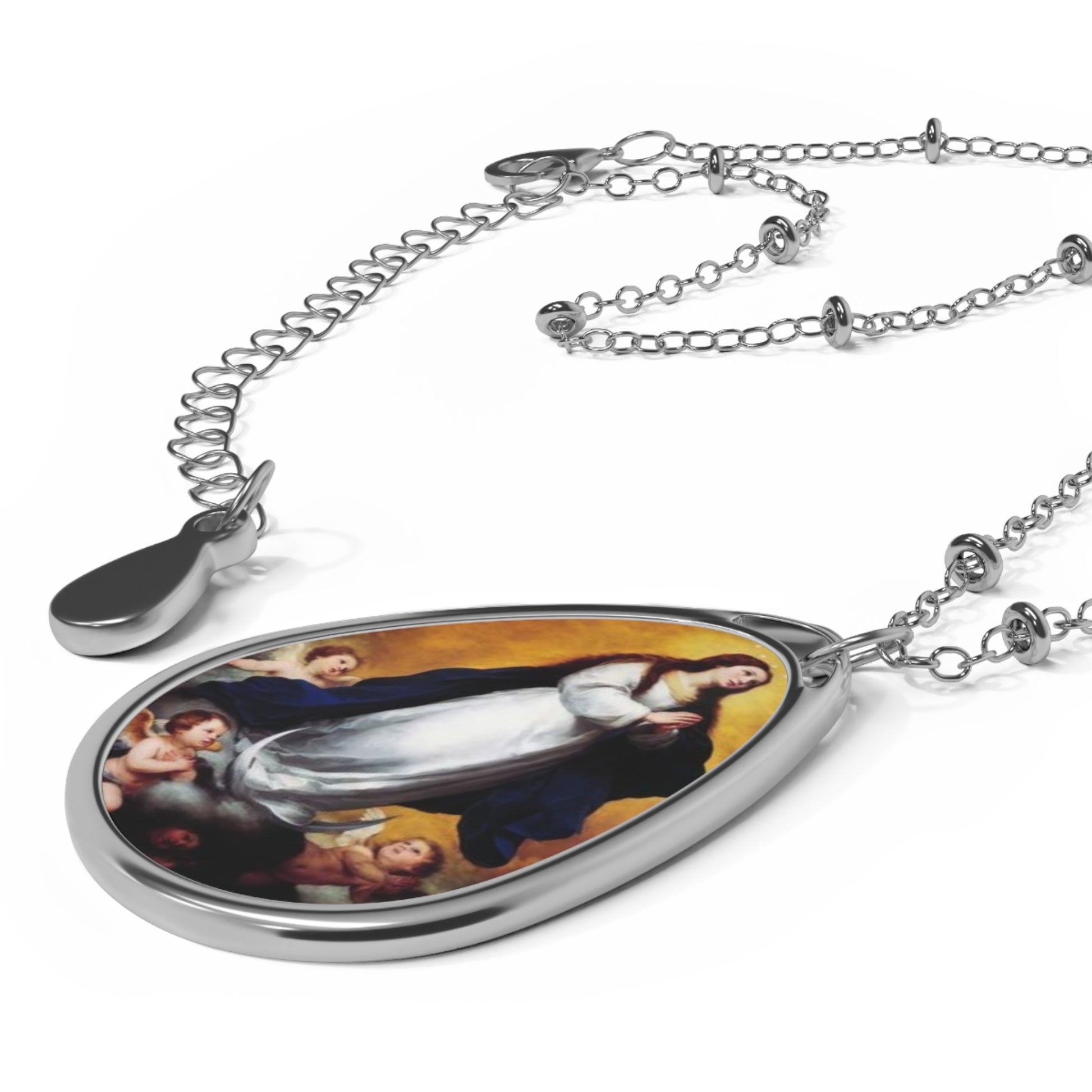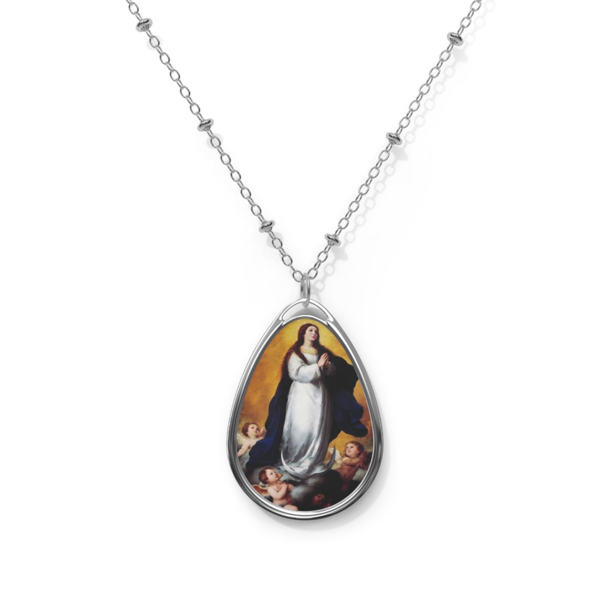 Oval Necklace, Catholic Jewelry, Immaculate Conception Medal Pendant, Our Lady Drop Necklace, Religious Gift