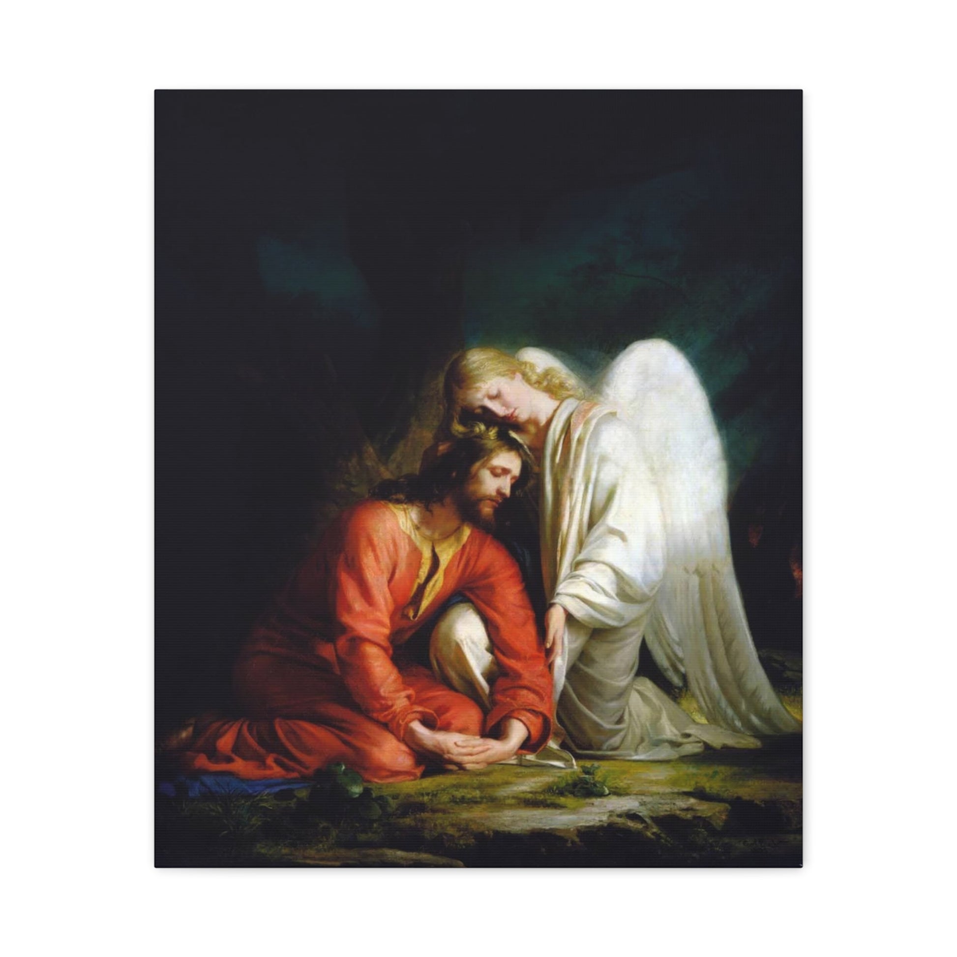 Ready To Hang - Bloch Gethsemane Jesus and Angel Praying - Agony in the Garden Catholic Canvas Wall Art, Christian Decor