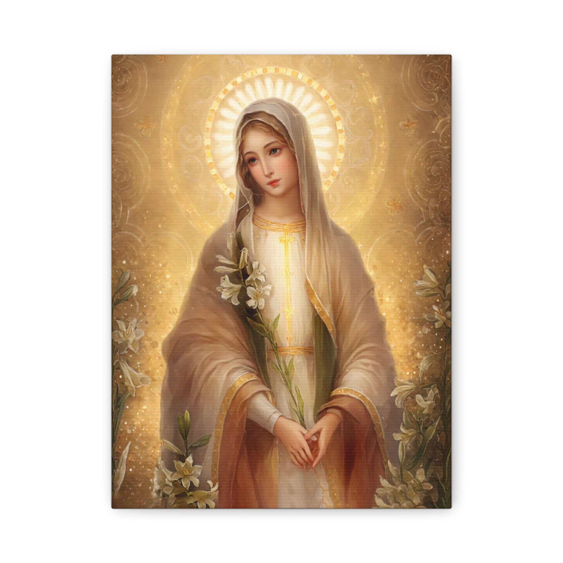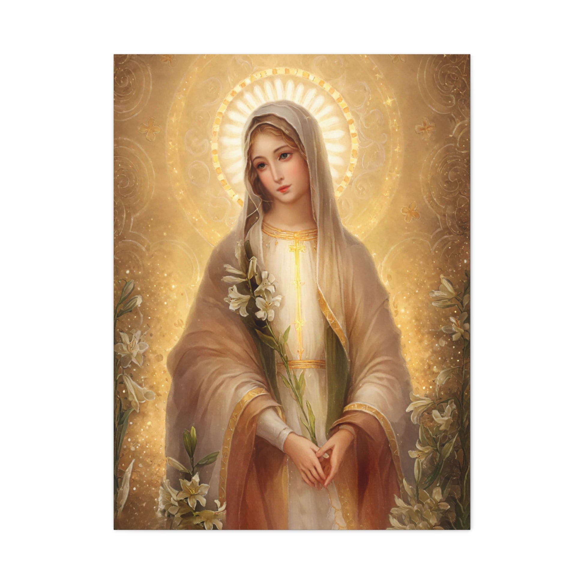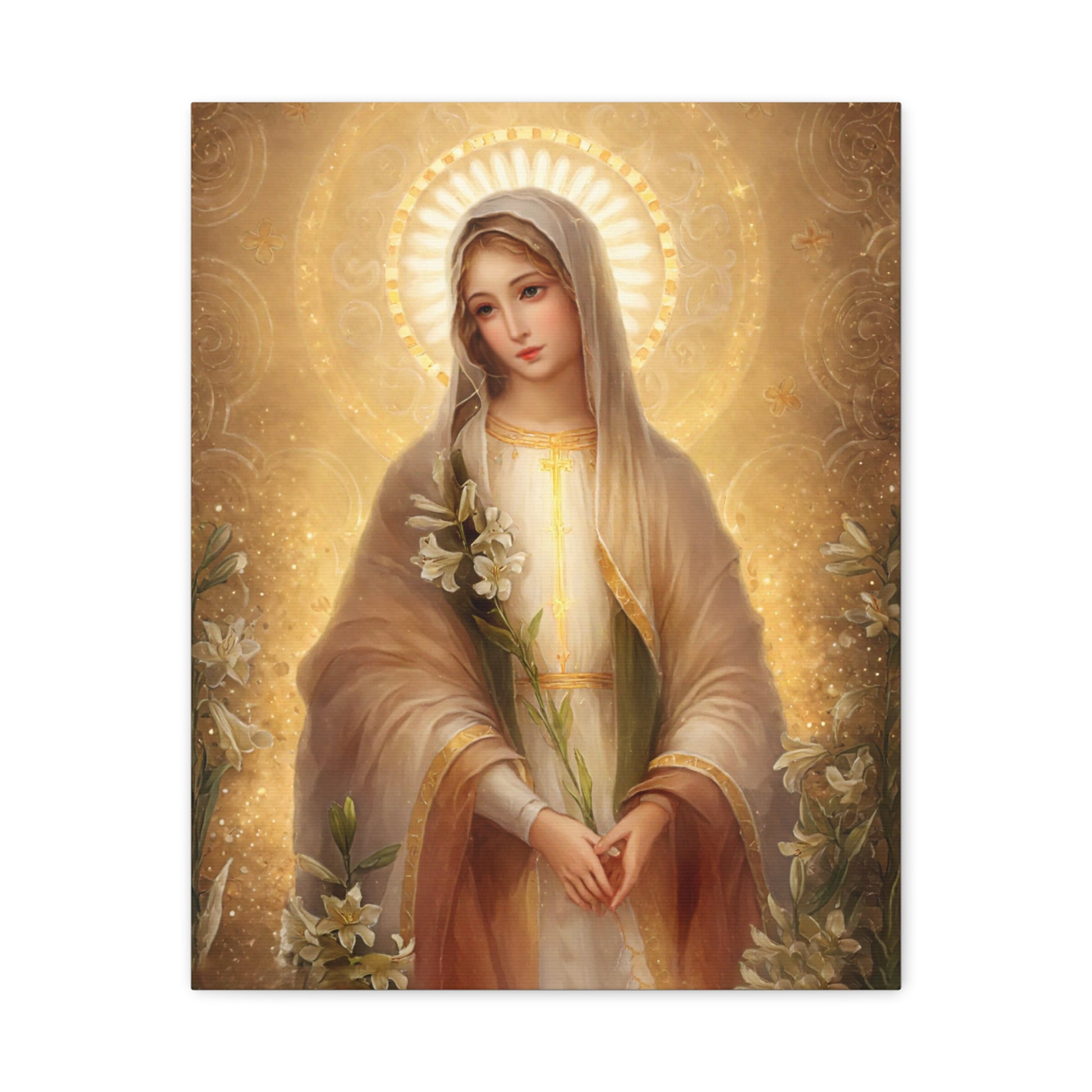 Ready to Hang - Mother Mary Our Lady of the Lilies Catholic Canvas Wall Art, Christian Decor