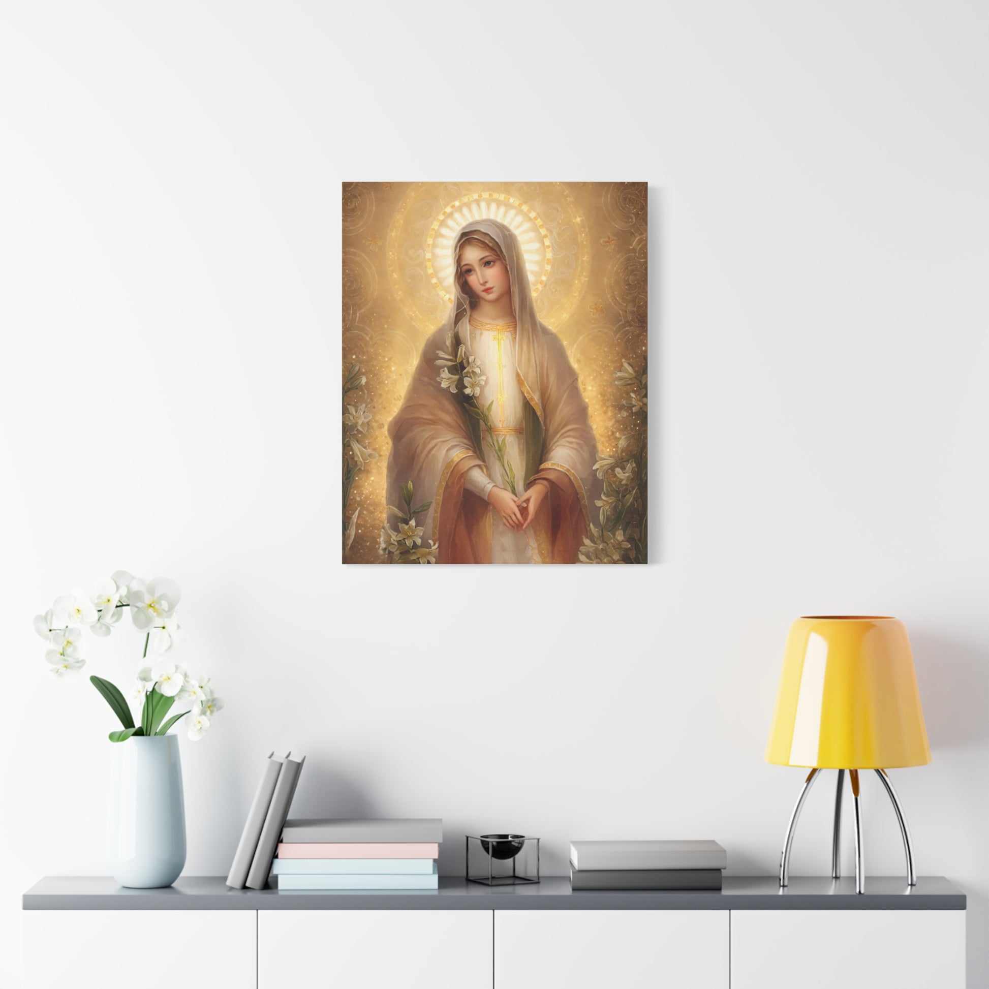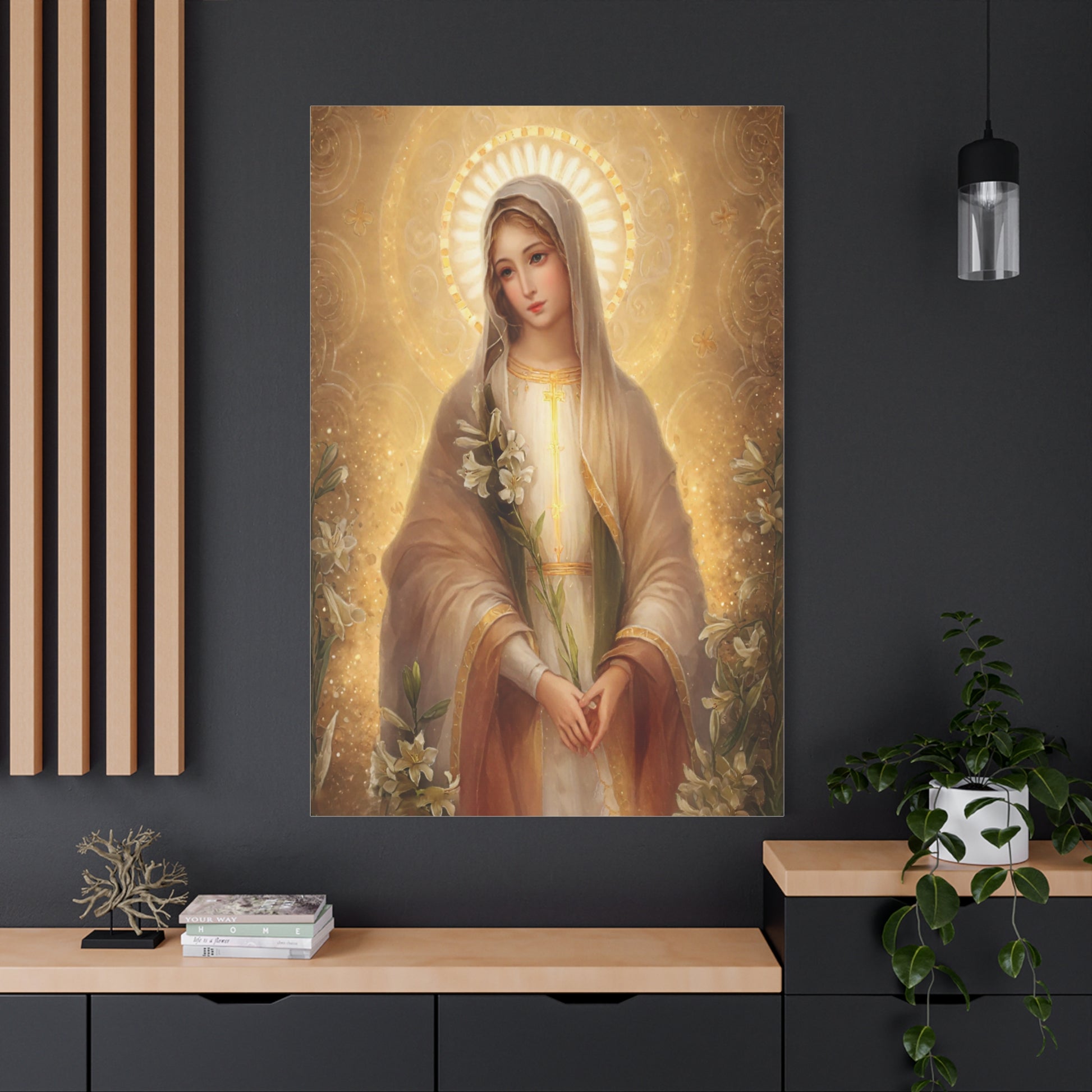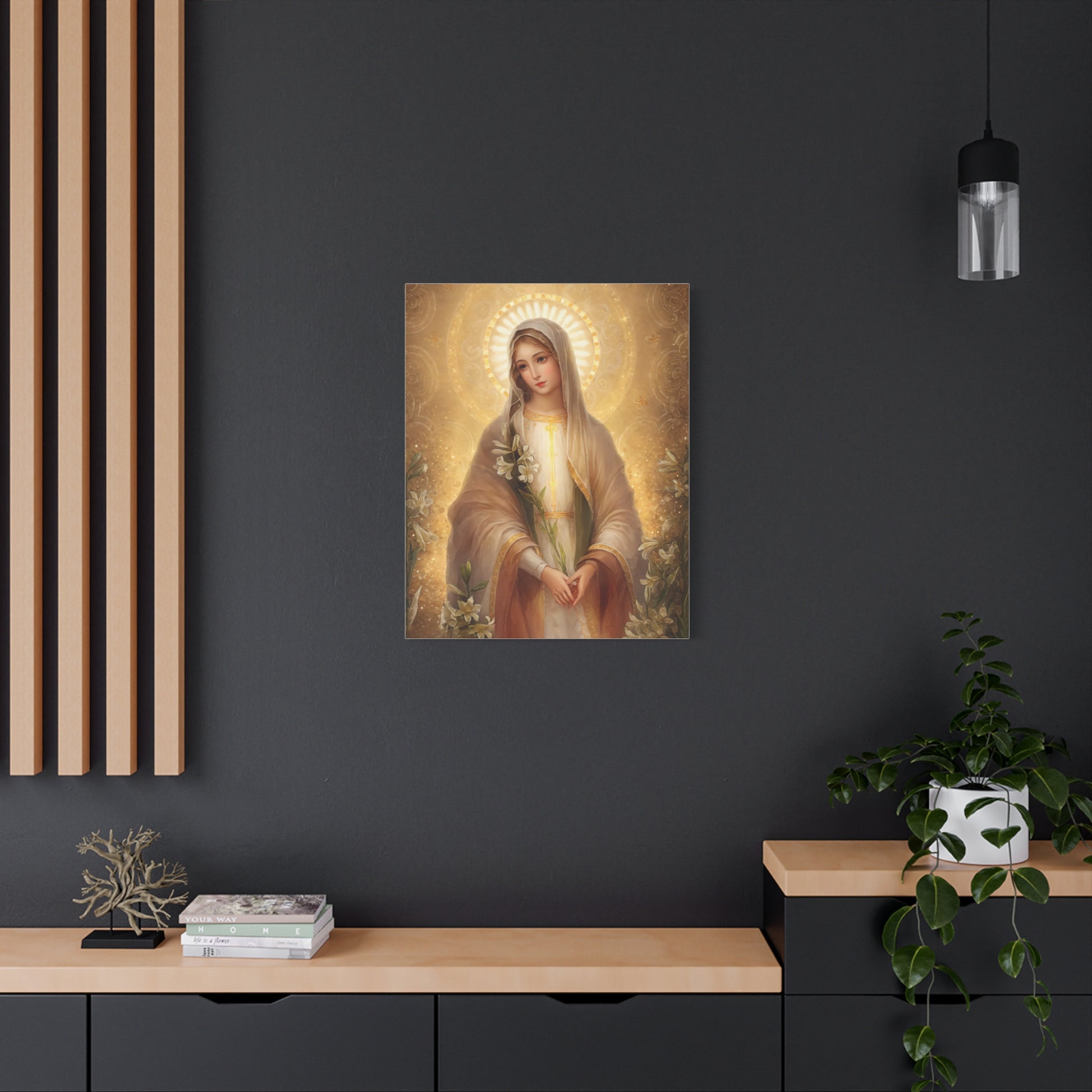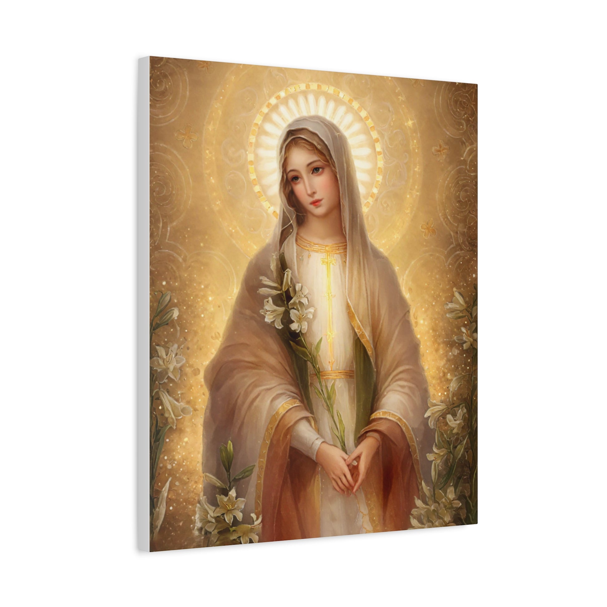 Ready to Hang - Mother Mary Our Lady of the Lilies Catholic Canvas Wall Art, Christian Decor
