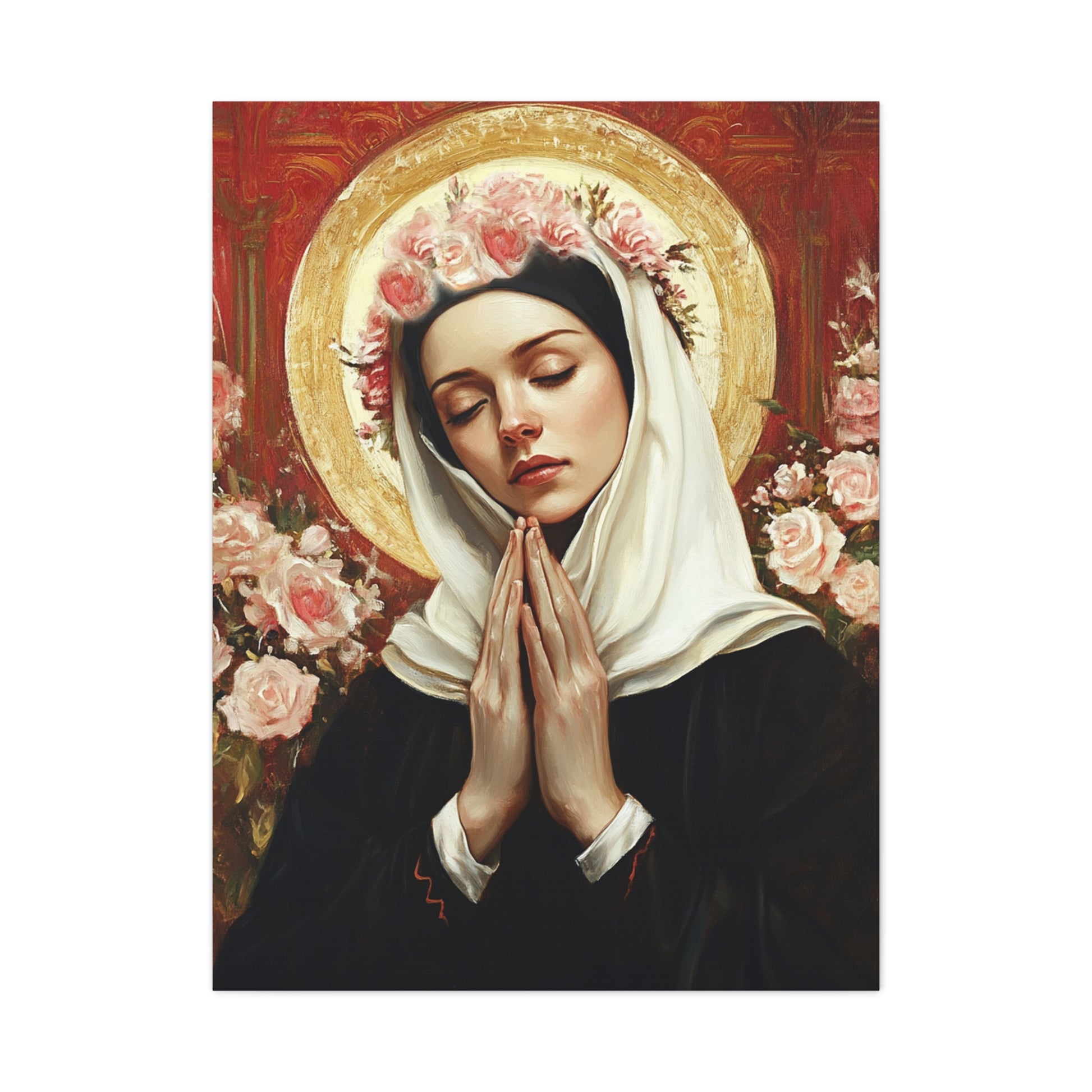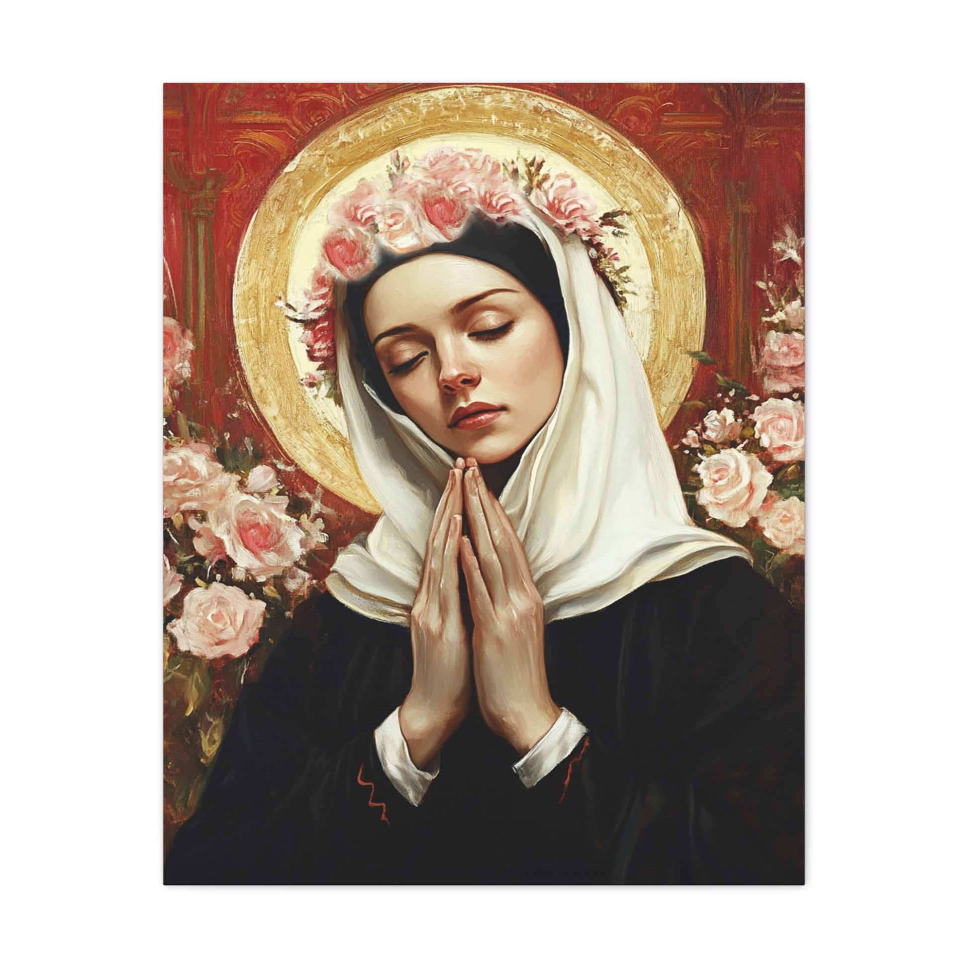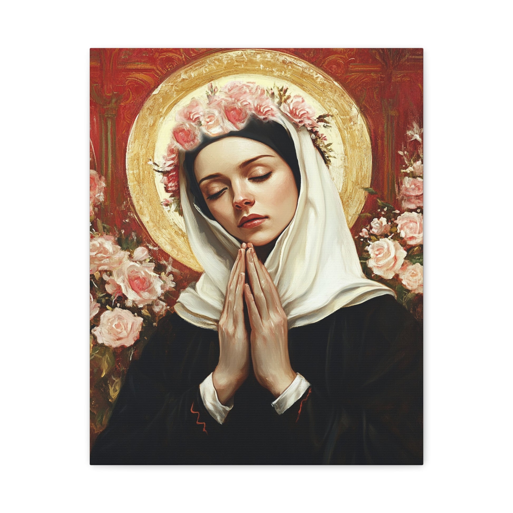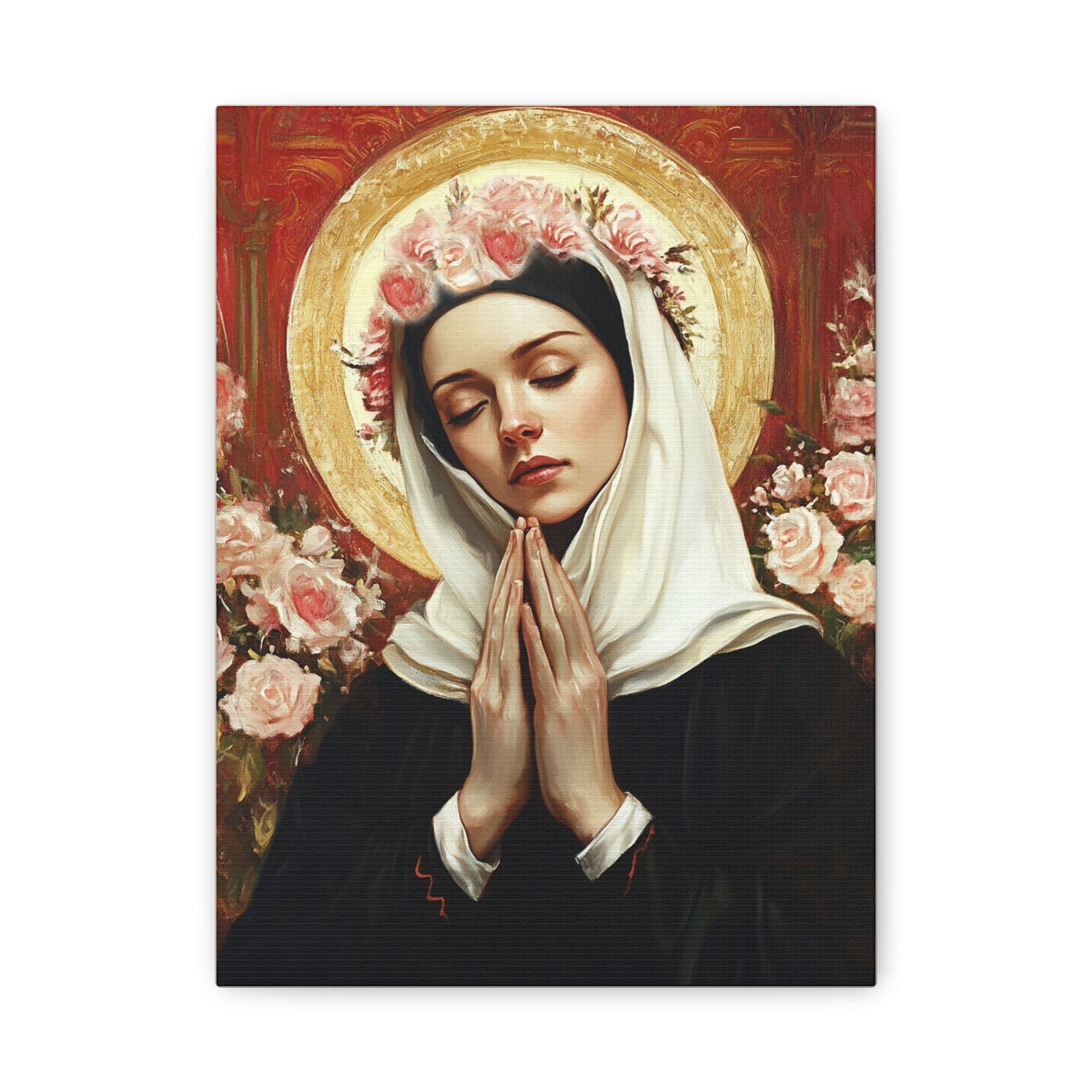Ready To Hang - St. Rose of Lima Roses Catholic Canvas Wall Art, Christian Decor