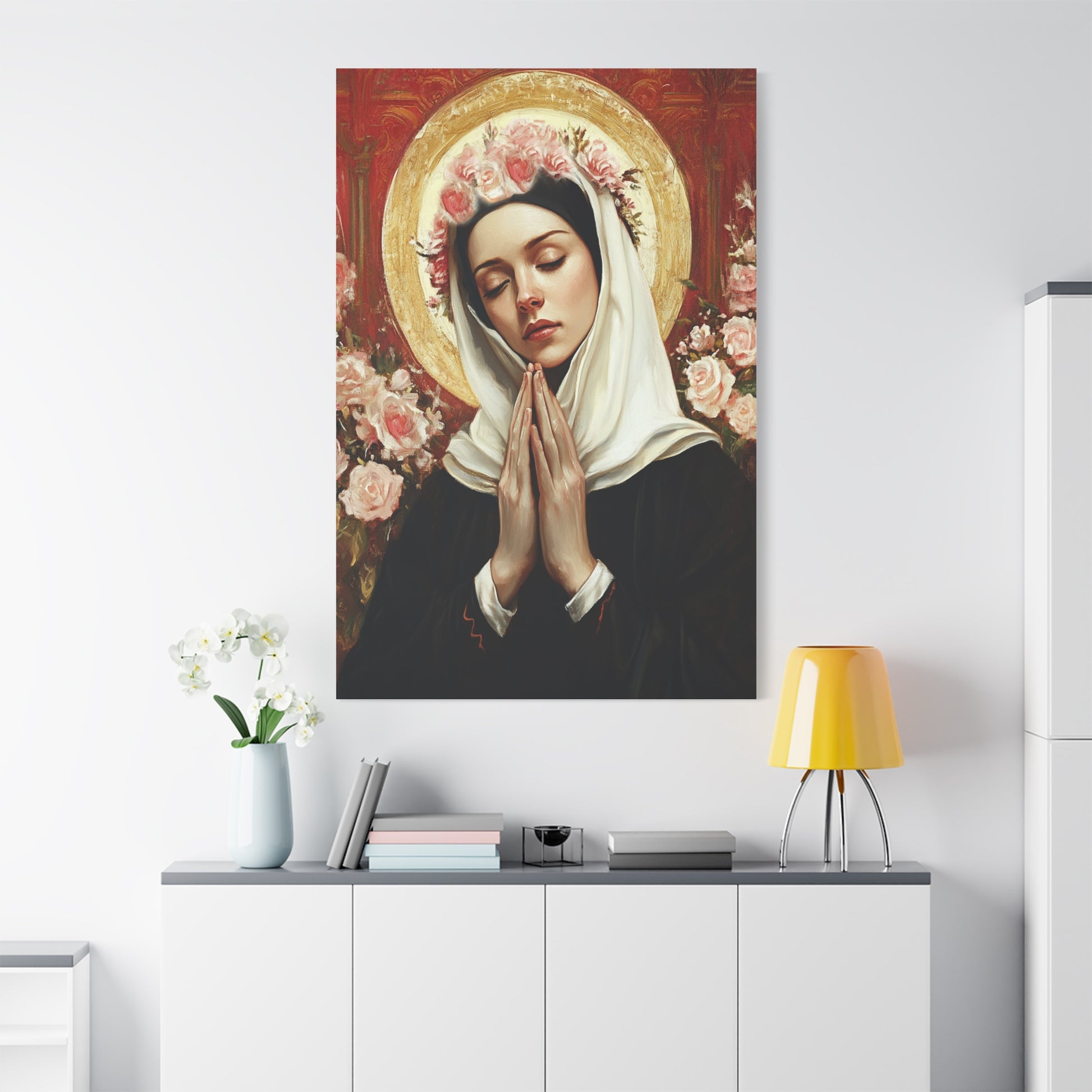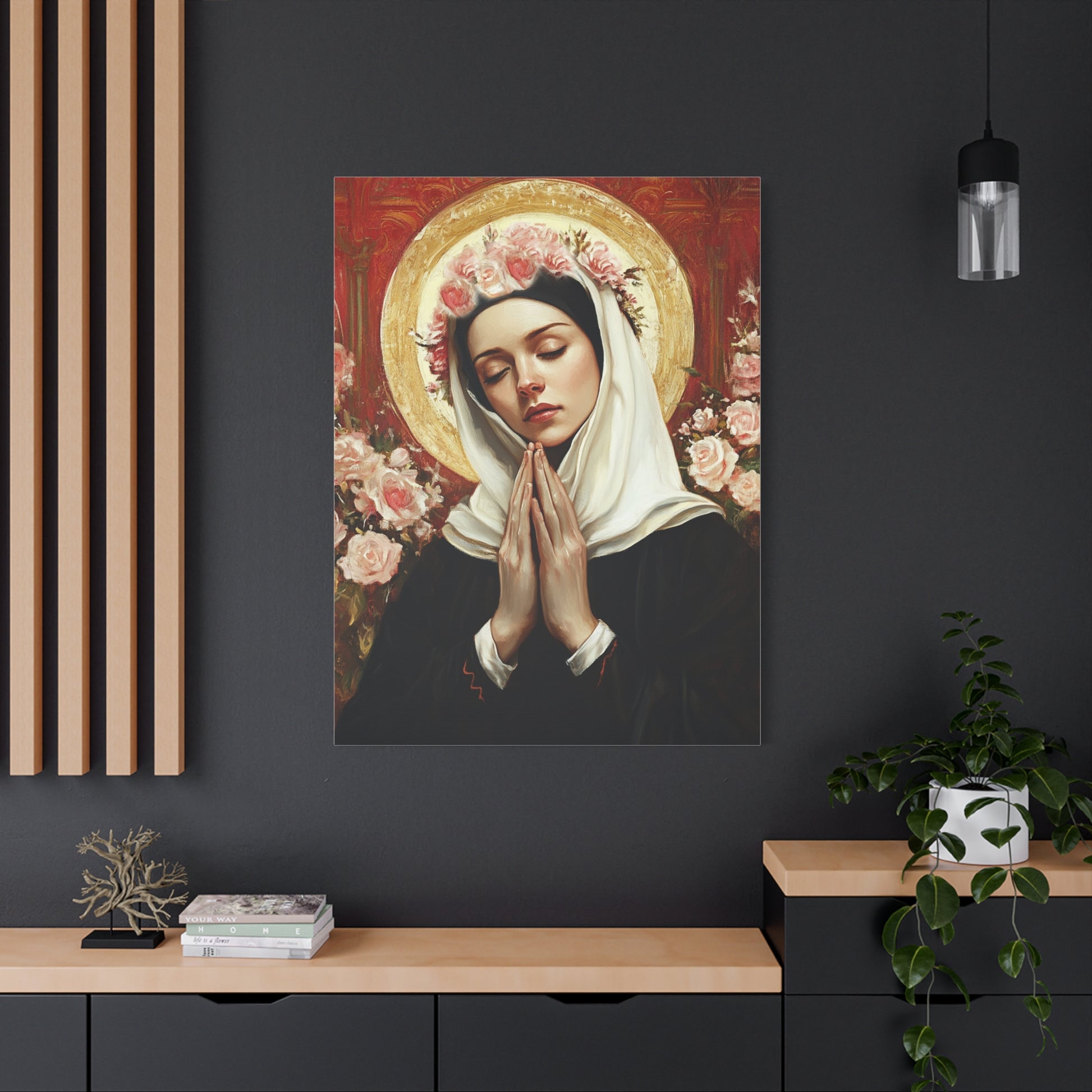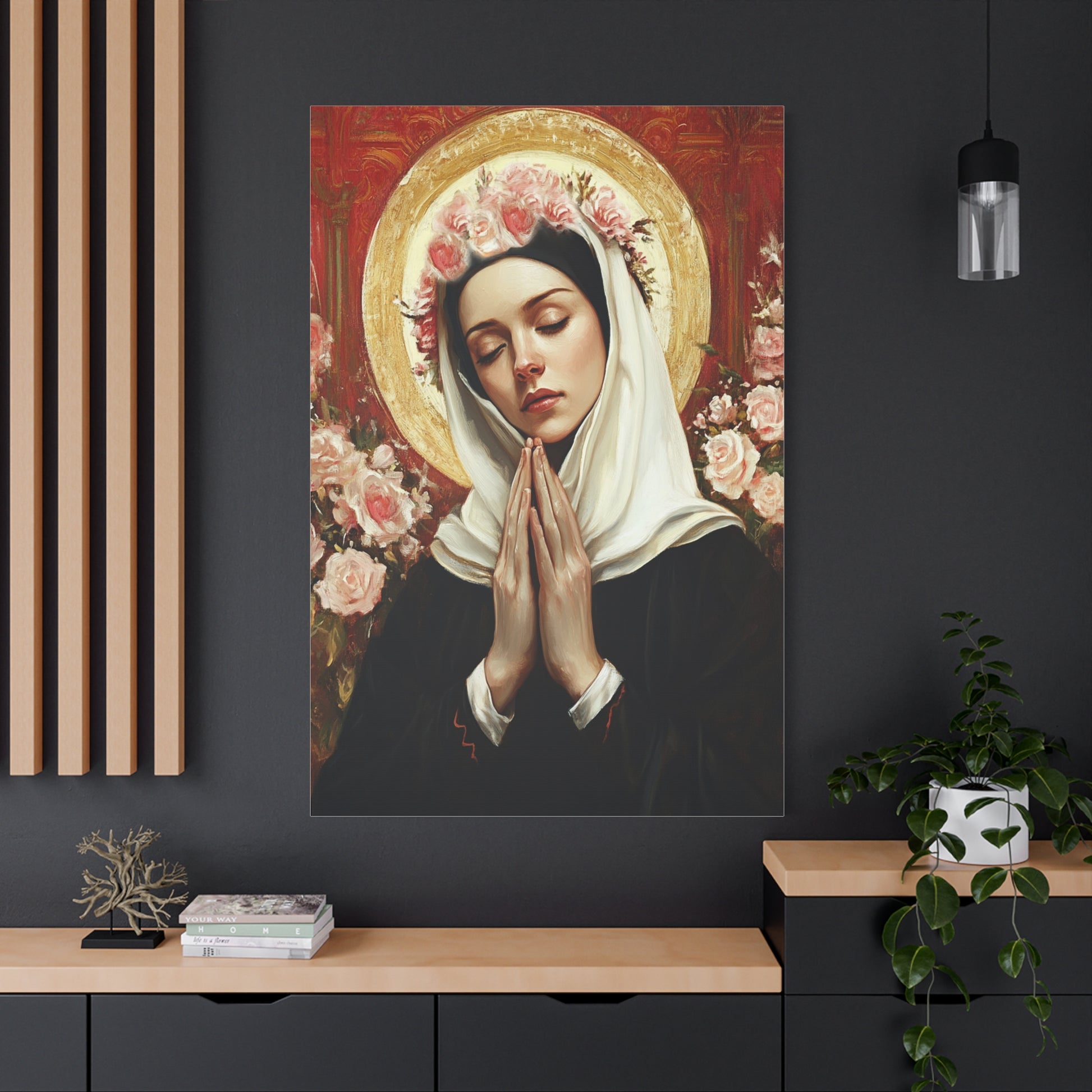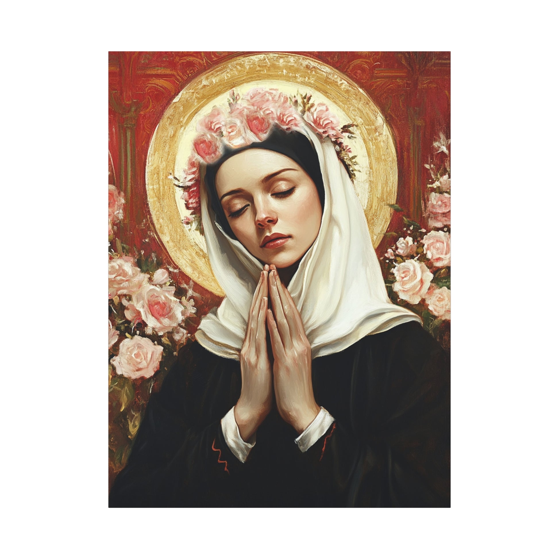 Ready To Hang - St. Rose of Lima Roses Catholic Canvas Wall Art, Christian Decor