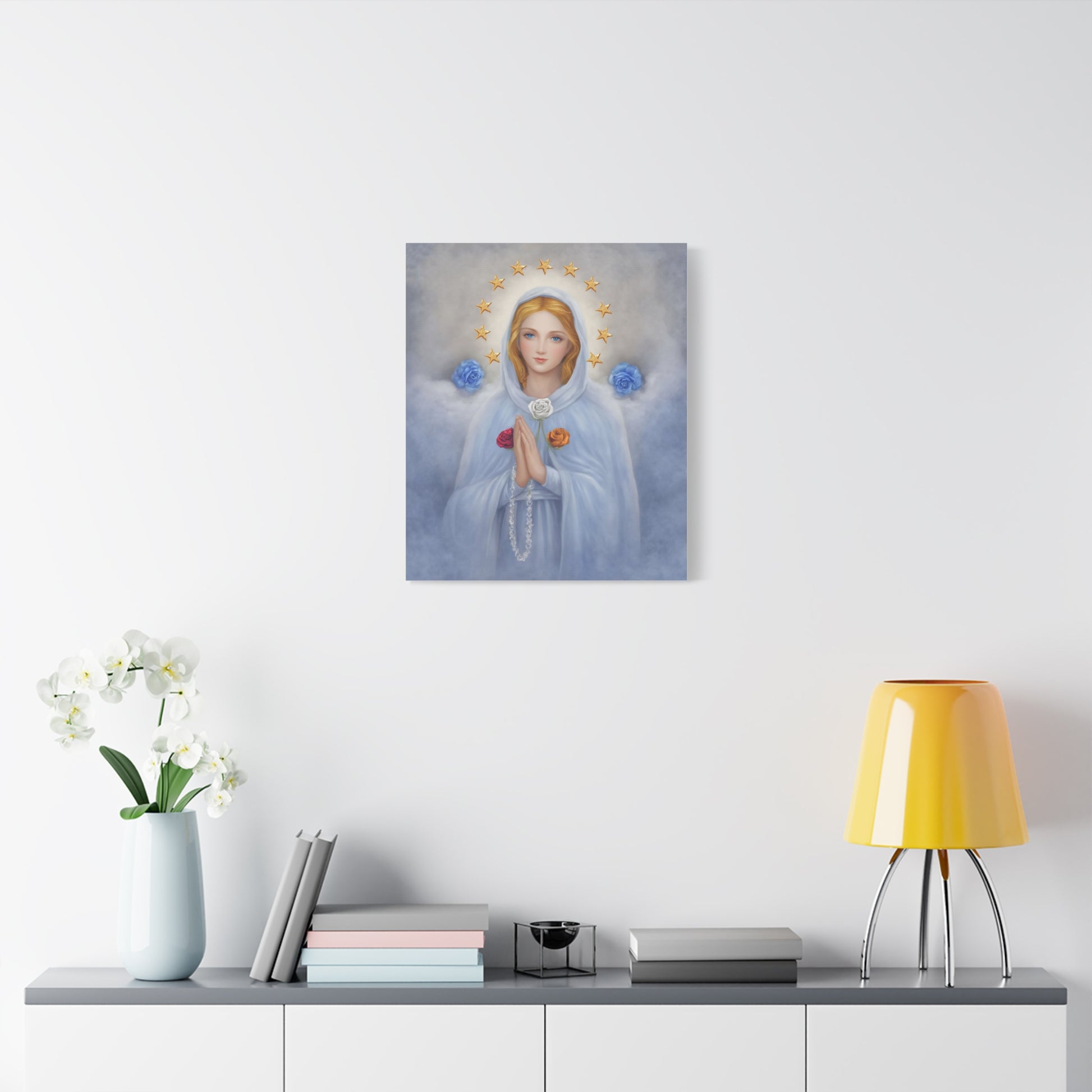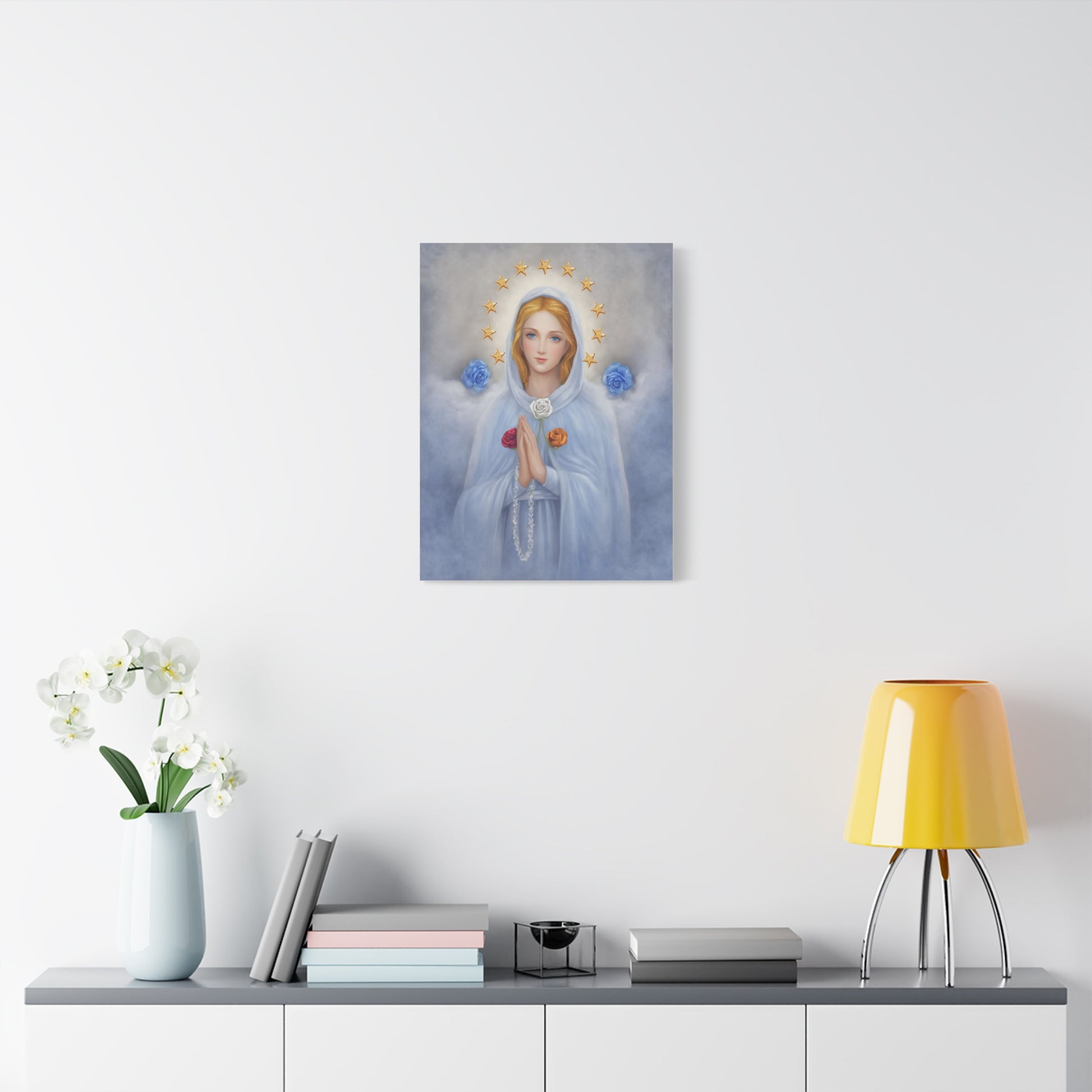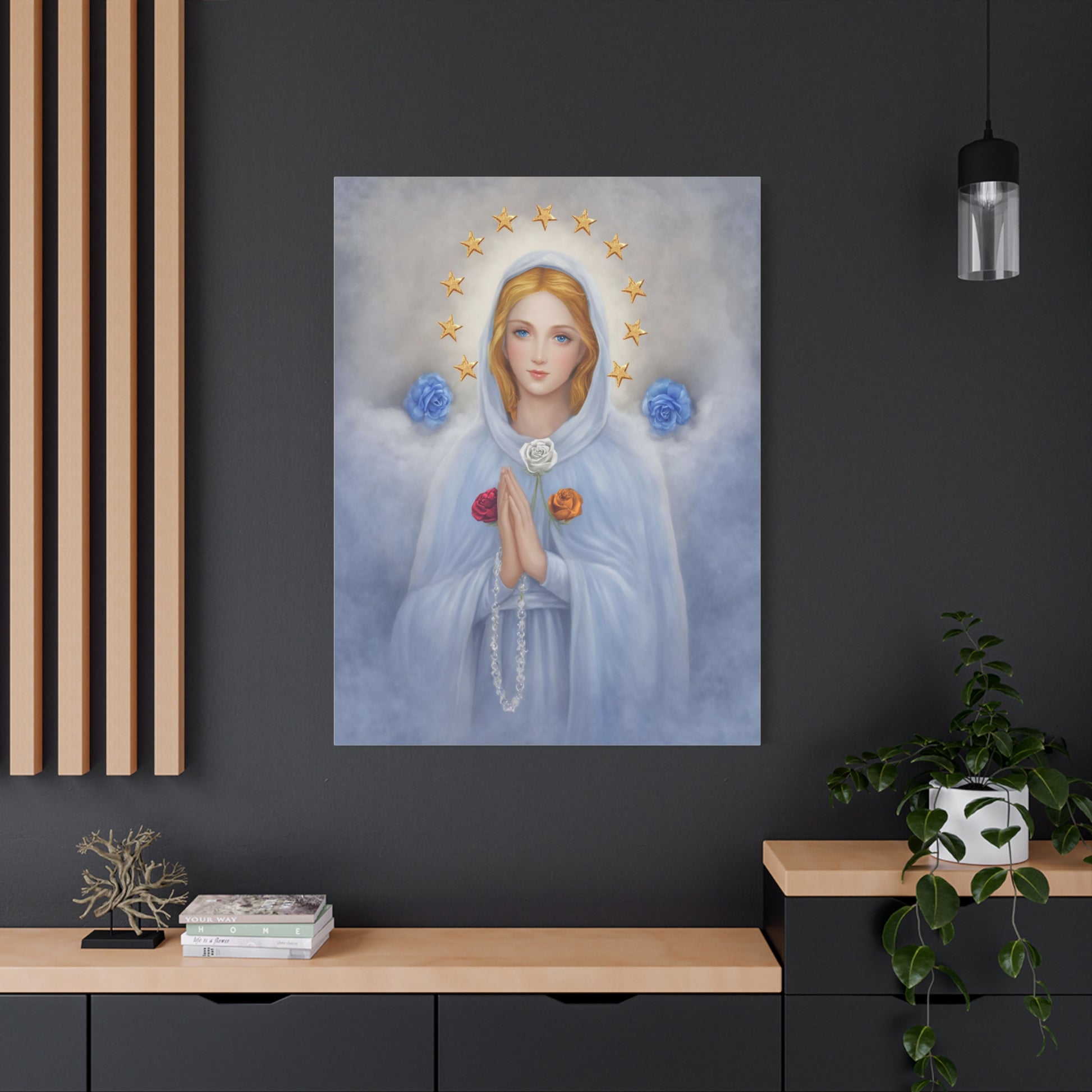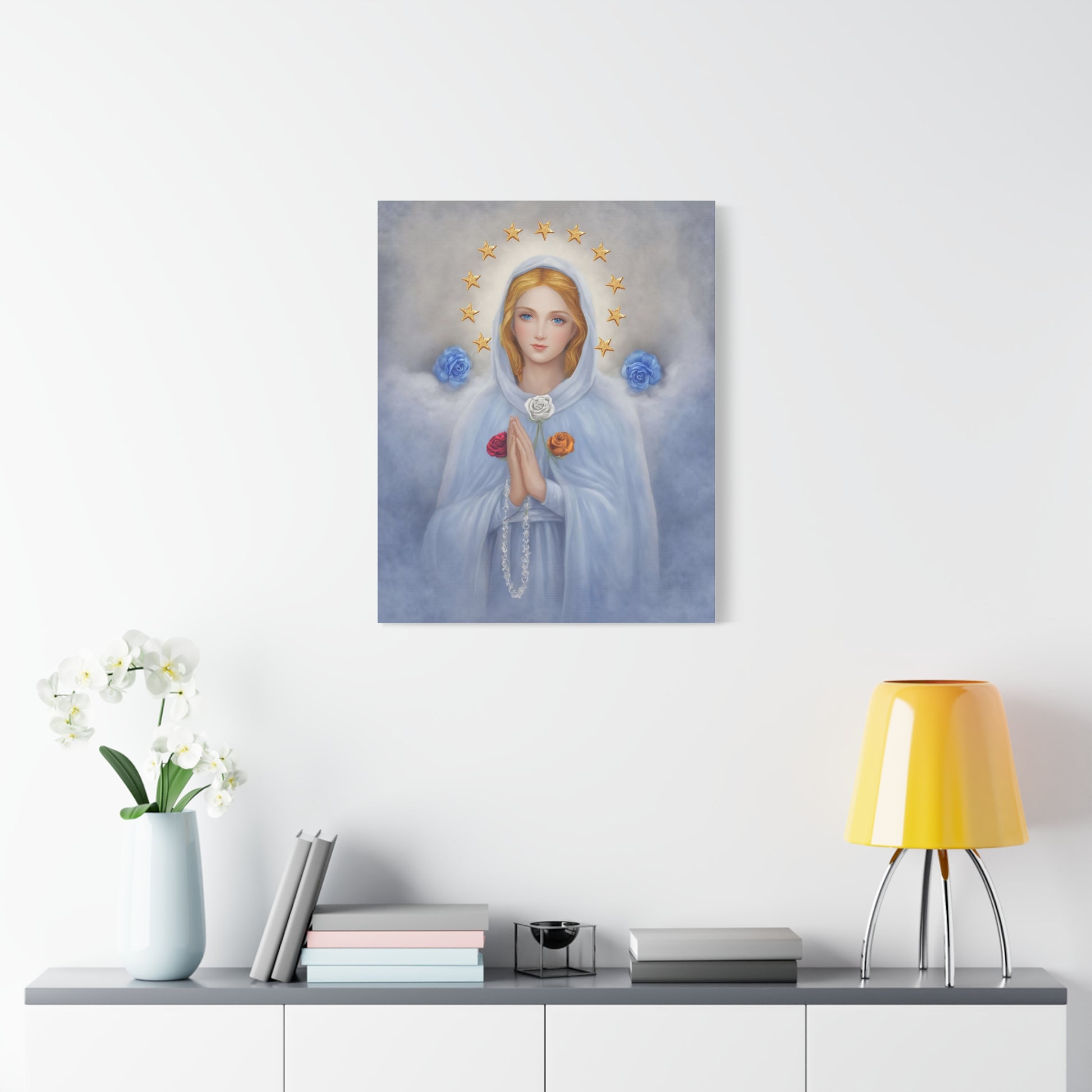 Rosa Mystica Mary Catholic Canvas Wall Art, Christian Decor