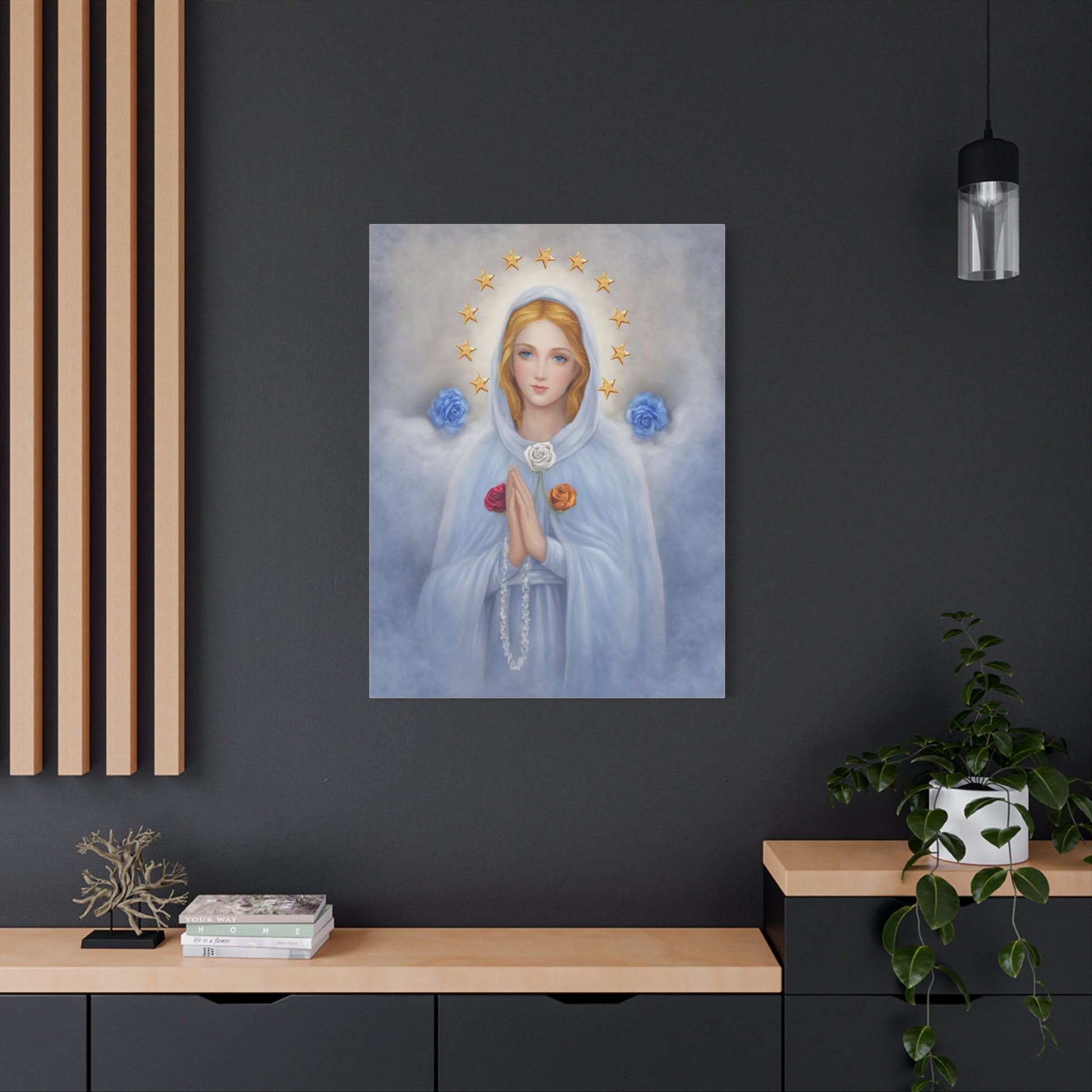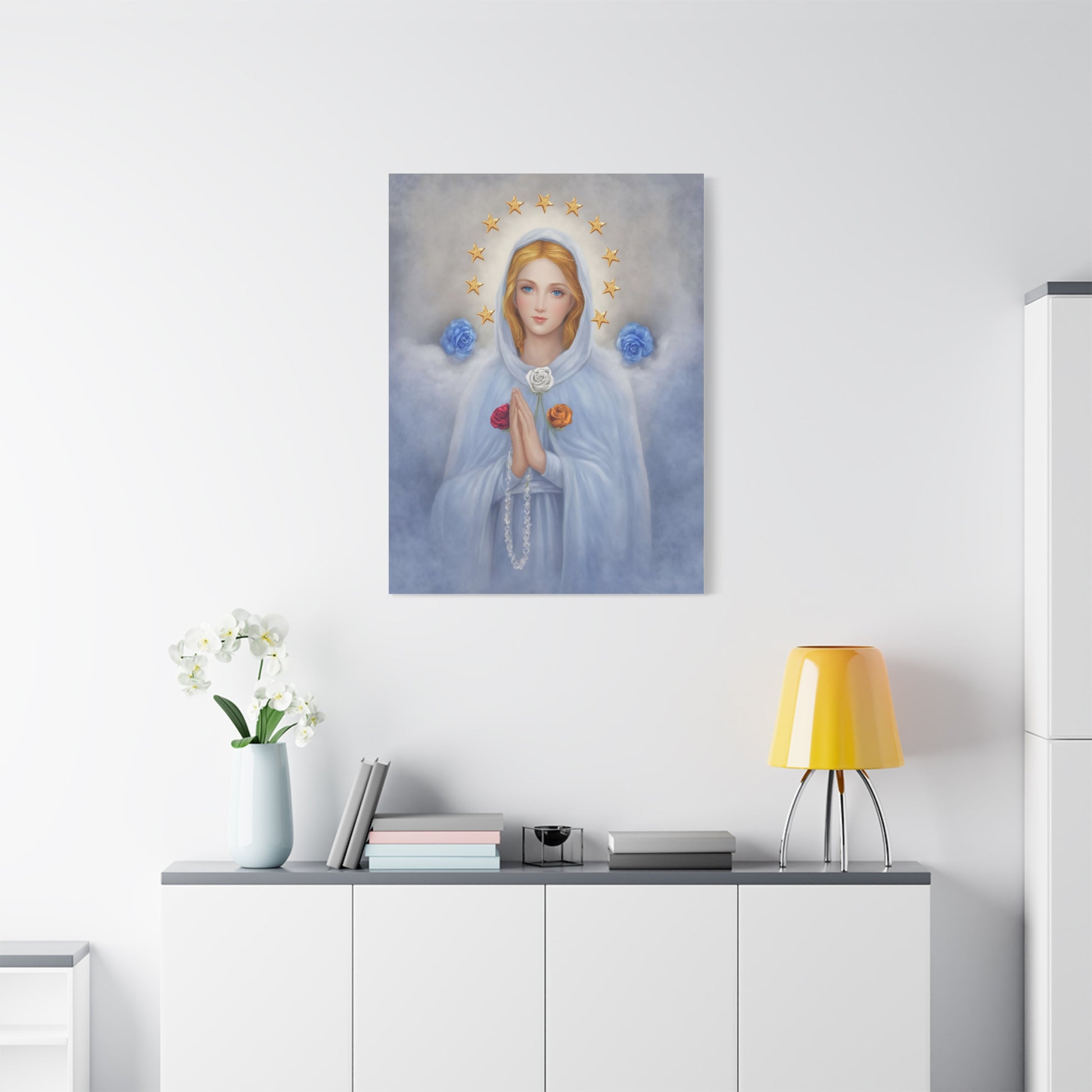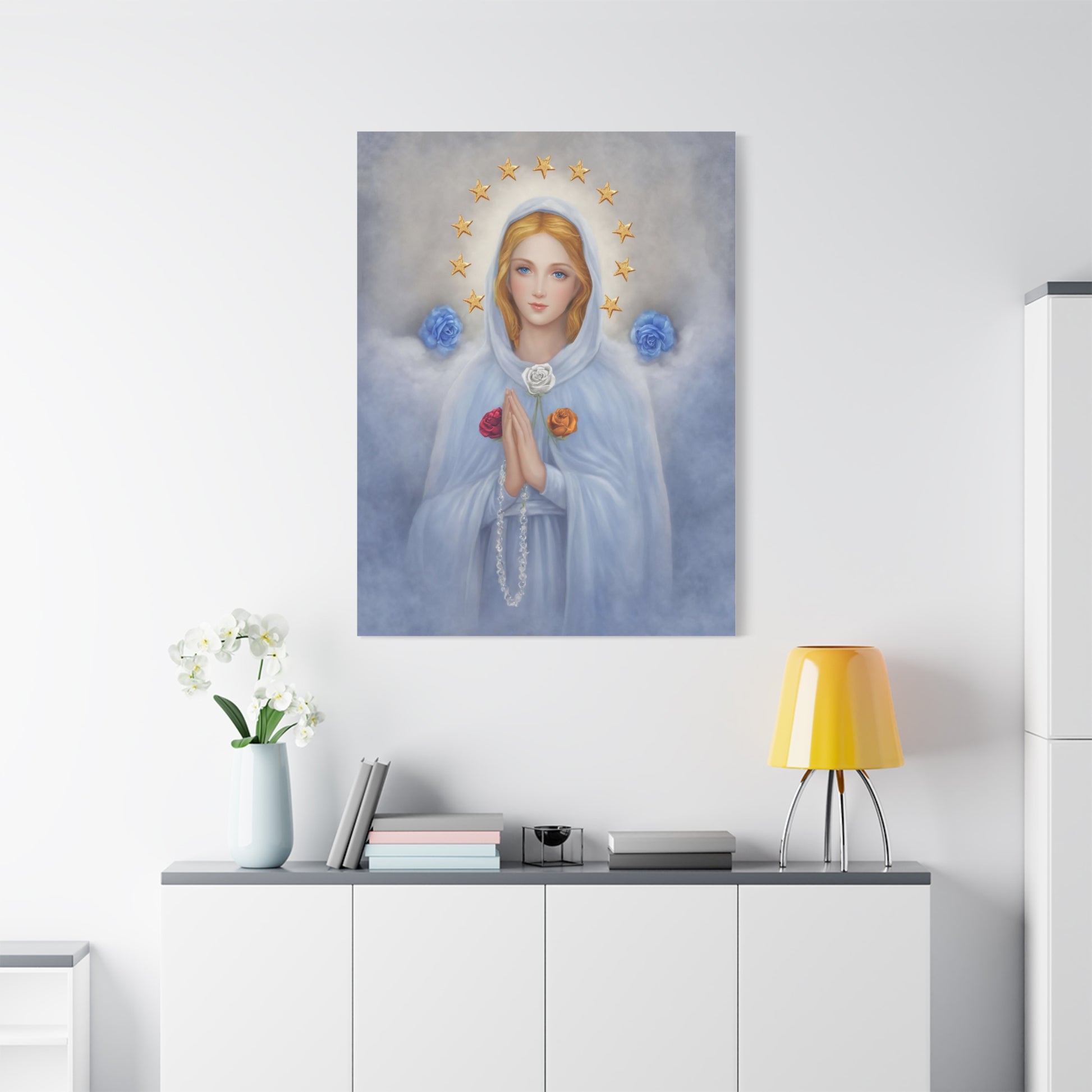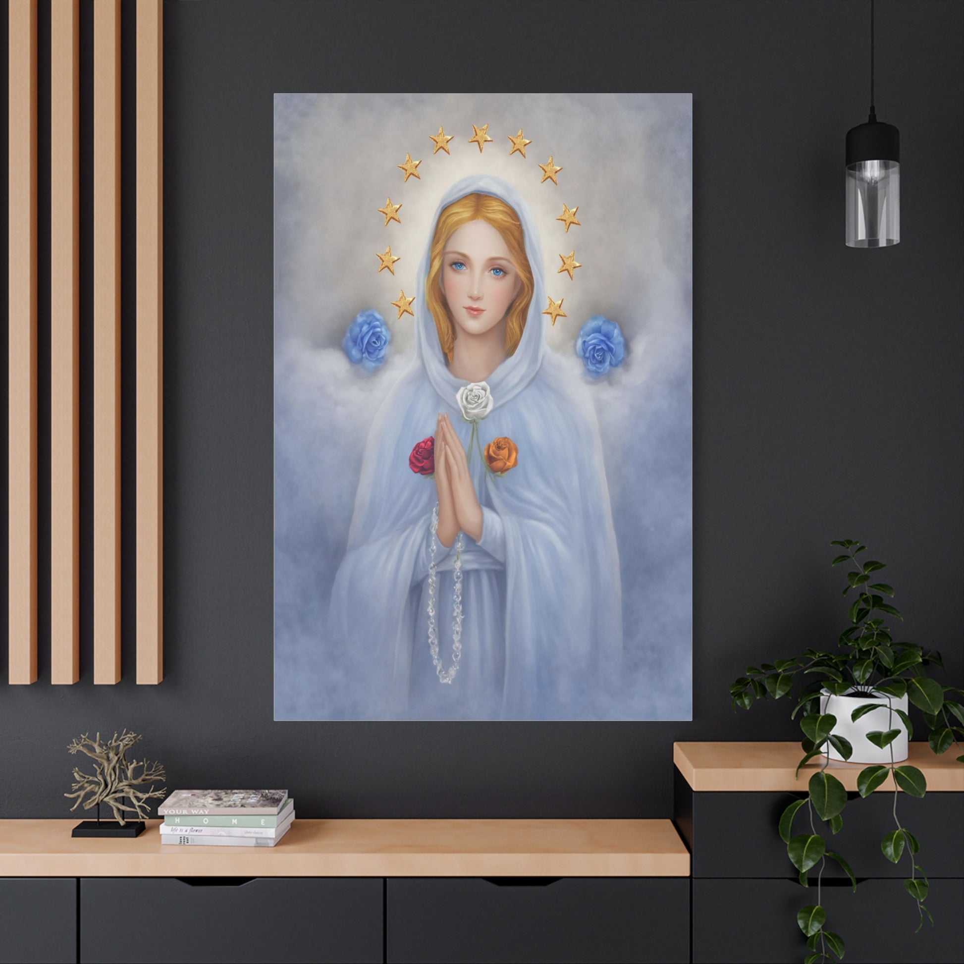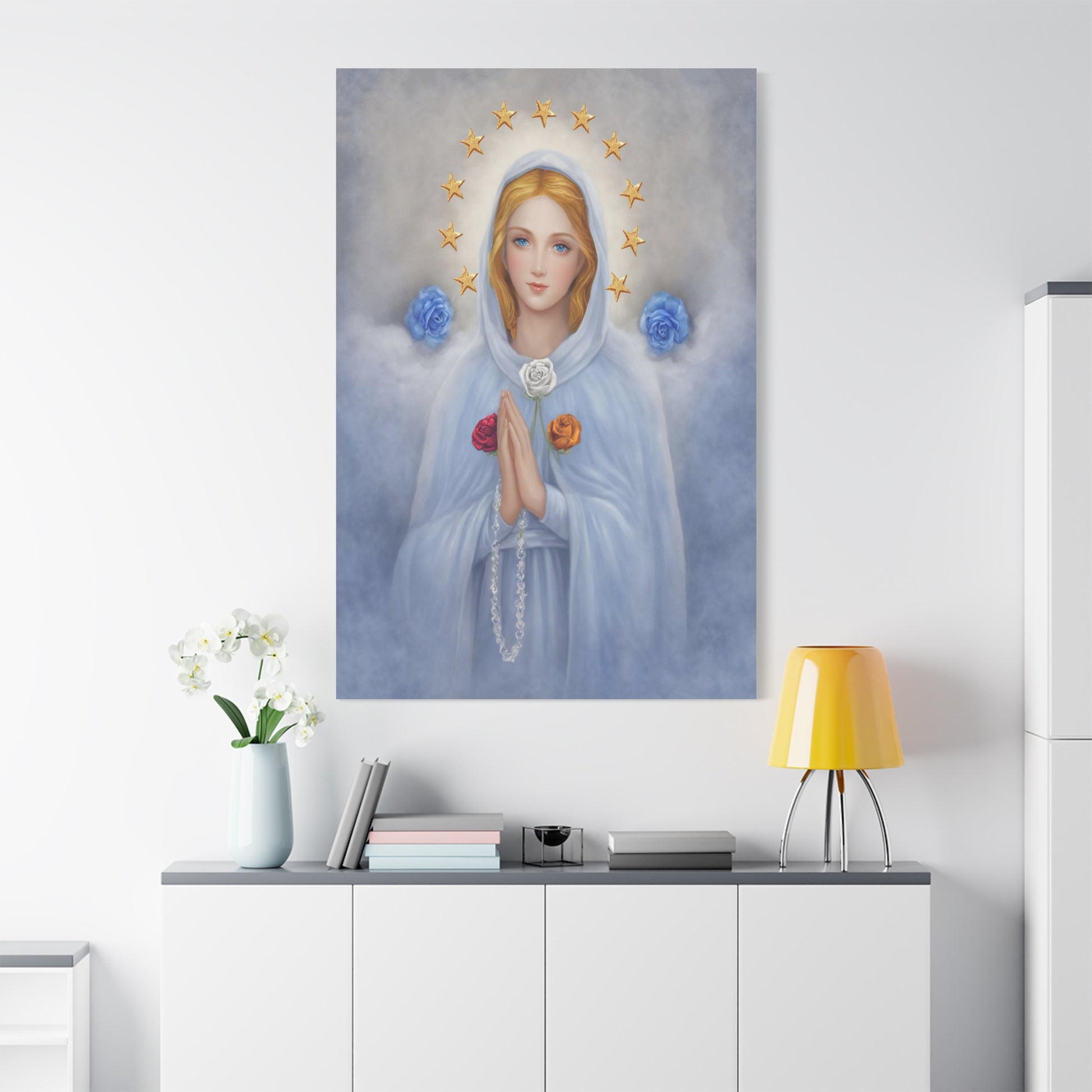Rosa Mystica Mary Catholic Canvas Wall Art, Christian Decor