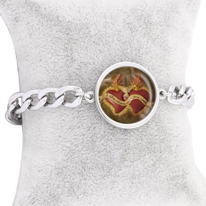 Sacred Heart Curb Bracelet Gold or Silver tone Religious Jewelry Simple Chain