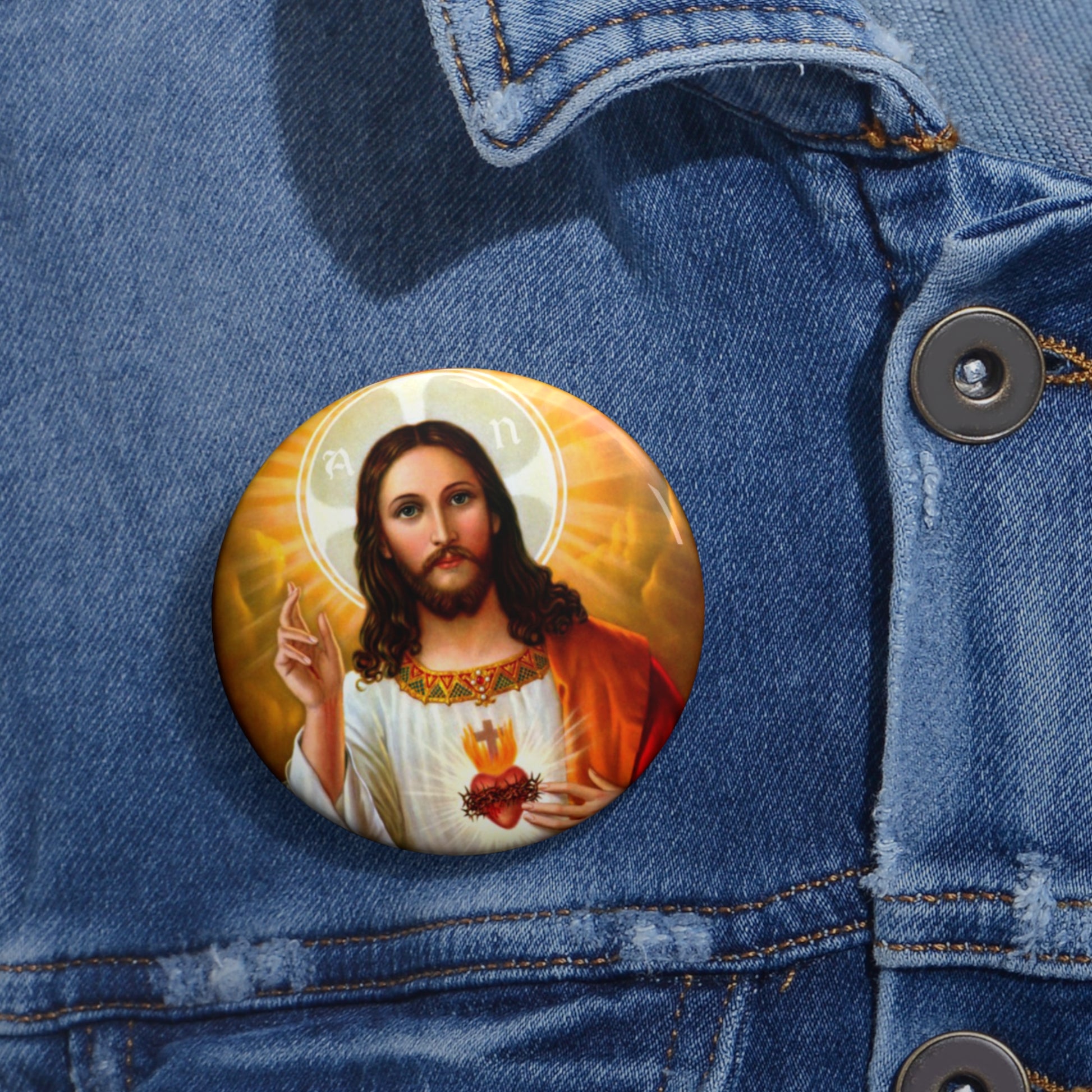 Sacred Heart Jesus Pin Buttons, Religious Enamel Badge, Spiritual Accessory, Faith Fashion Jewelry, Custom Button Pins