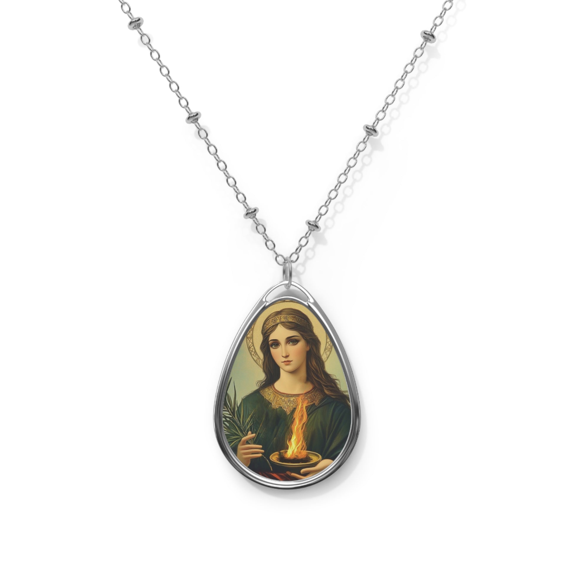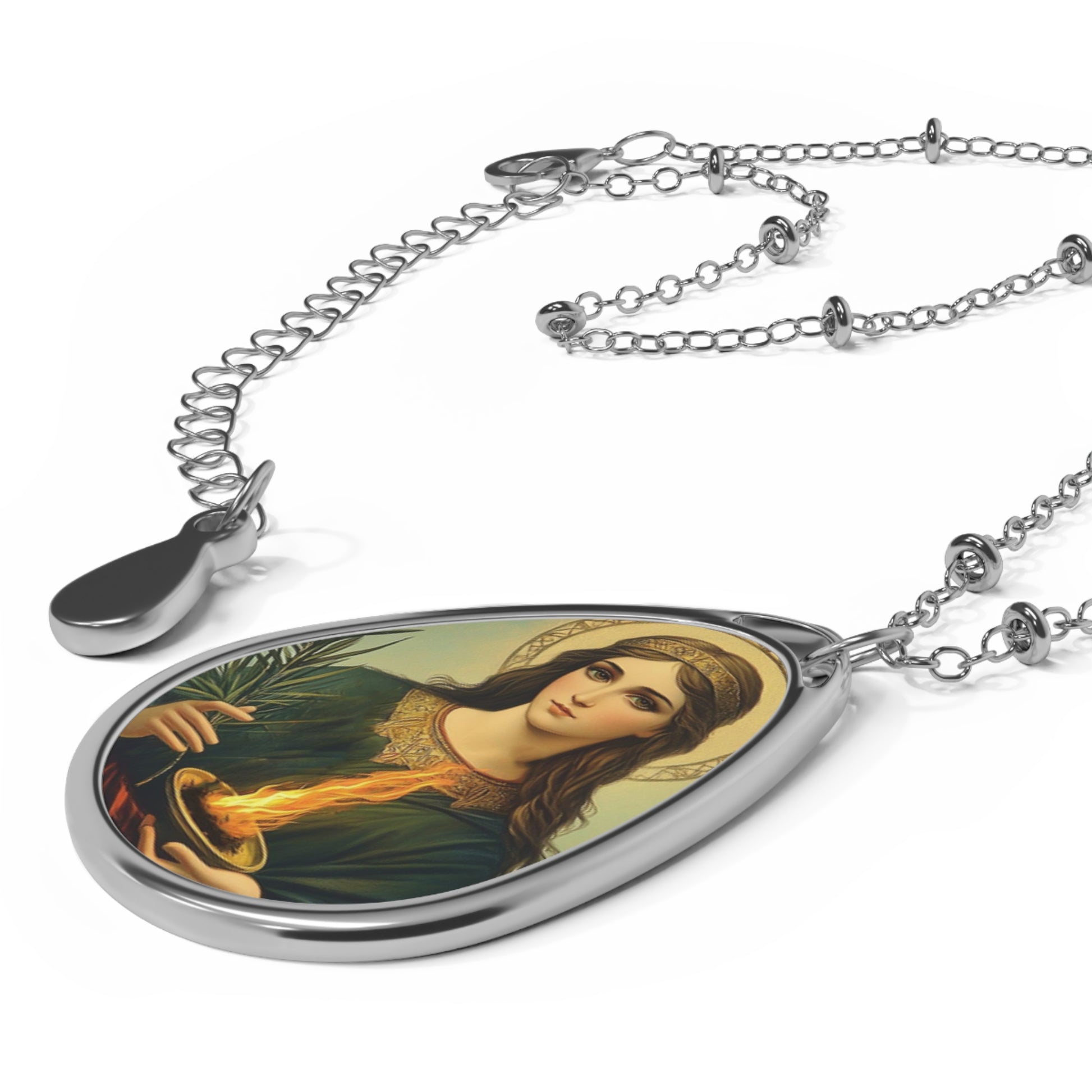 Saint Agatha Necklace Drop Oval Pendant Silver Tone Medal