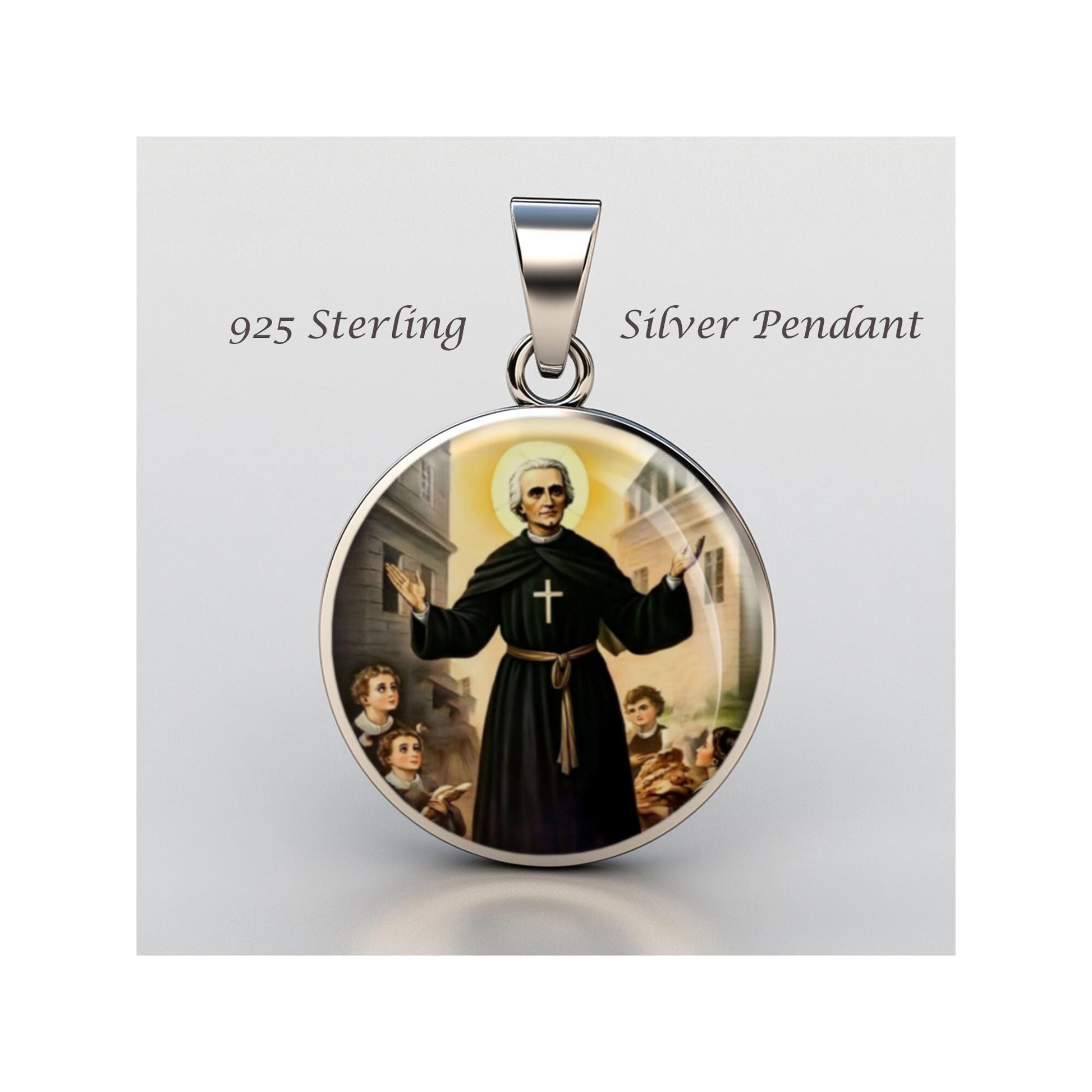 Dedicated to Saint Antonio De Sant Anna Galvao, this 20mm sterling silver pendant features a delicate design under a clear glass dome, crafted with high-quality paper. The pendant comes in a beautiful jewelry box, ready for gifting—perfect for birthdays, anniversaries, Christmas, Easter, Baptism, First Communion, Confirmation, Mother's Day, or as a thoughtful gift for a loved one.