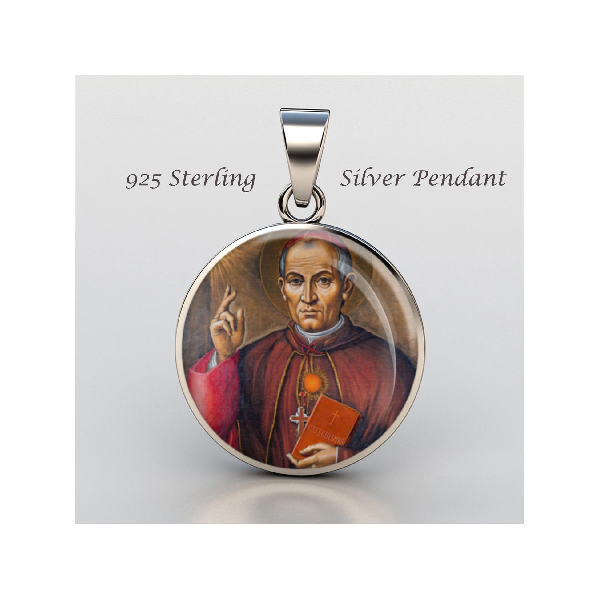 Dedicated to Saint Antonio Maria Claret, this 20mm sterling silver pendant features a delicate design under a clear glass dome, crafted with high-quality paper. The pendant comes in a beautiful jewelry box, ready for gifting—perfect for birthdays, anniversaries, Christmas, Easter, Baptism, First Communion, Confirmation, Mother's Day, or as a thoughtful gift for a loved one.