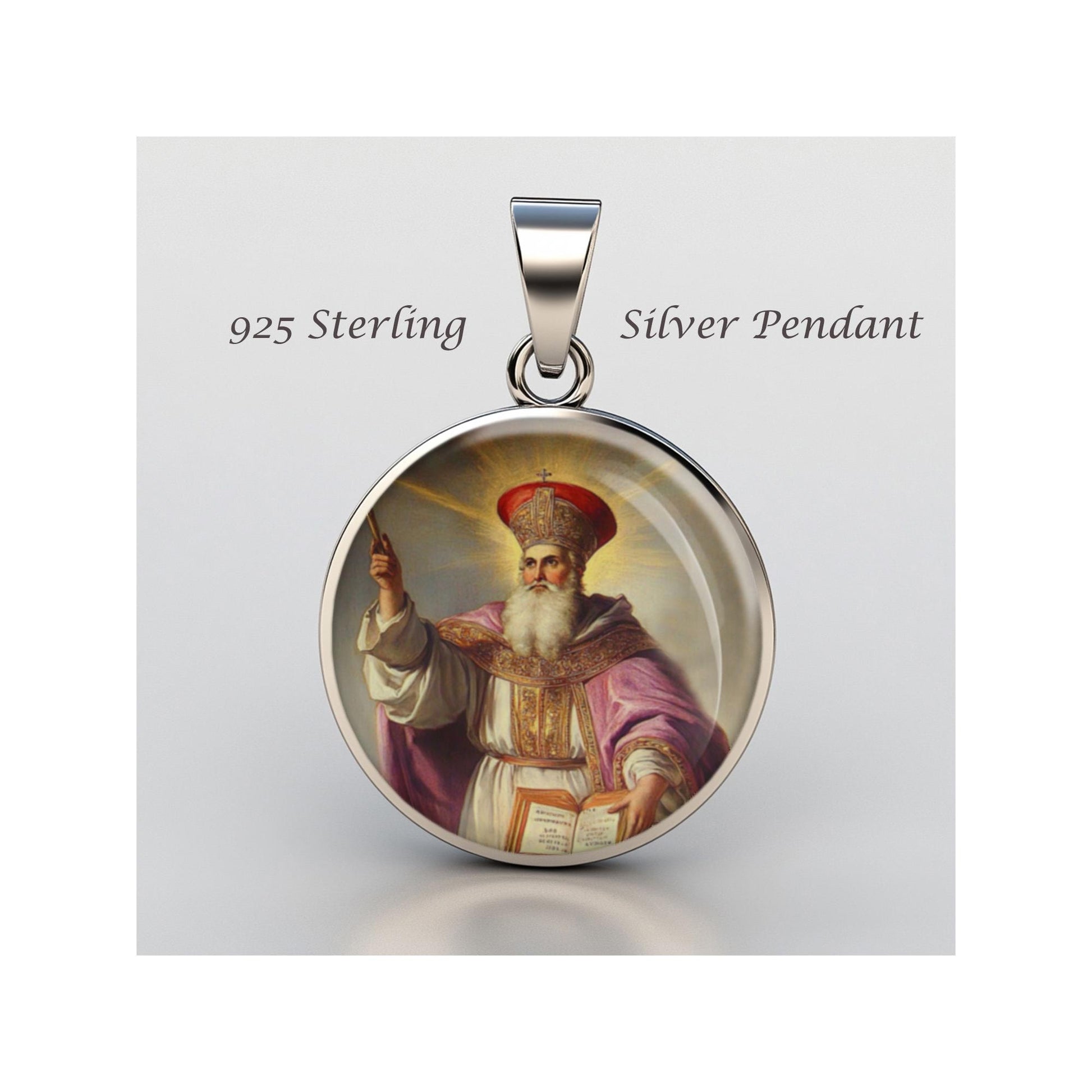 Dedicated to Saint Athanasius, this 20mm sterling silver pendant features a delicate design under a clear glass dome, crafted with high-quality paper. The pendant comes in a beautiful jewelry box, ready for gifting—perfect for birthdays, anniversaries, Christmas, Easter, Baptism, First Communion, Confirmation, Mother's Day, or as a thoughtful gift for a loved one.