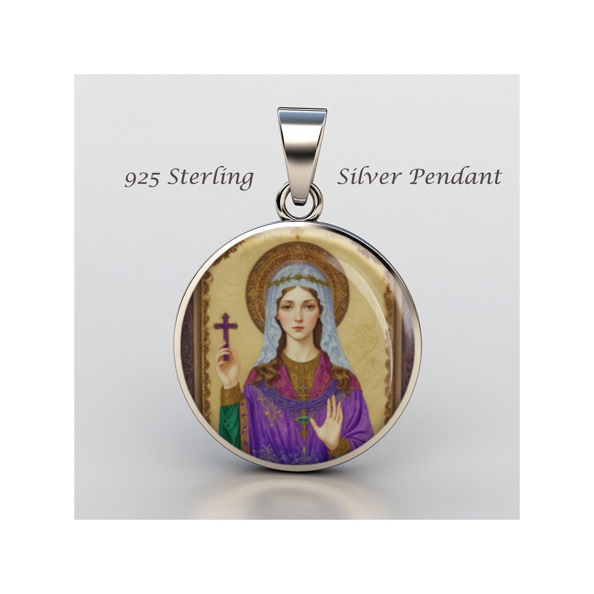 Dedicated to Saint Claudia, this 20mm sterling silver pendant features a delicate design under a clear glass dome, crafted with high-quality paper. The pendant comes in a beautiful jewelry box, ready for gifting—perfect for birthdays, anniversaries, Christmas, Easter, Baptism, First Communion, Confirmation, Mother's Day, or as a thoughtful gift for a loved one.