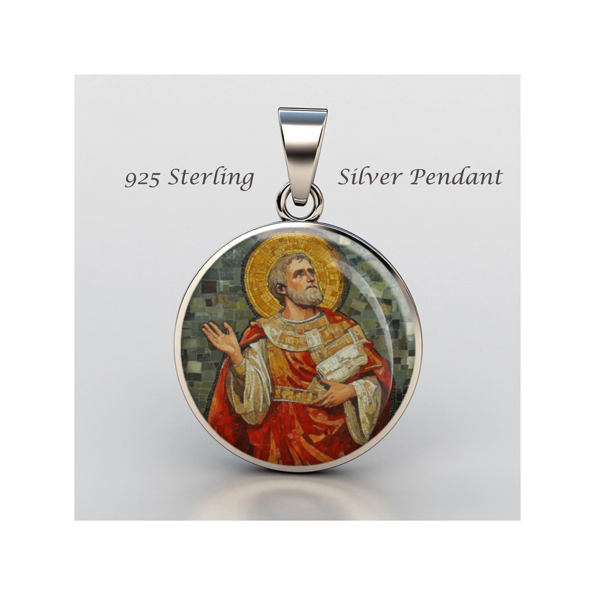 Dedicated to Saint Clement Of Rome, this 20mm sterling silver pendant features a delicate design under a clear glass dome, crafted with high-quality paper. The pendant comes in a beautiful jewelry box, ready for gifting—perfect for birthdays, anniversaries, Christmas, Easter, Baptism, First Communion, Confirmation, Mother's Day, or as a thoughtful gift for a loved one.