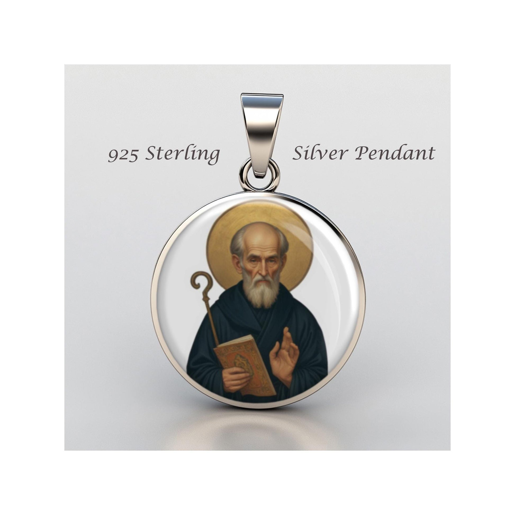 Dedicated to Saint Columba, this 20mm sterling silver pendant features a delicate design under a clear glass dome, crafted with high-quality paper. The pendant comes in a beautiful jewelry box, ready for gifting—perfect for birthdays, anniversaries, Christmas, Easter, Baptism, First Communion, Confirmation, Mother's Day, or as a thoughtful gift for a loved one.